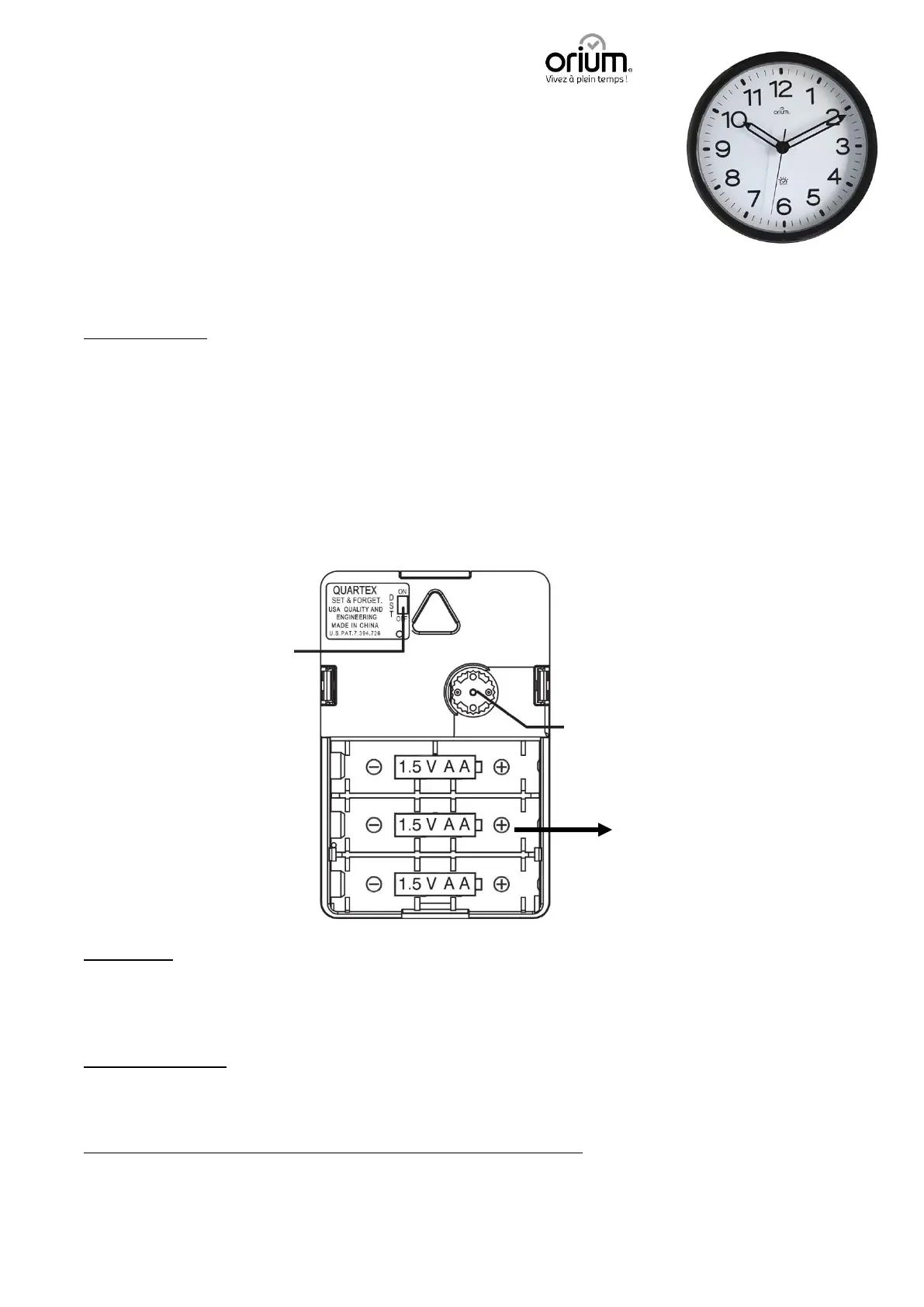 - Betrieb mit 3 LR6-Batterien (nicht im Lieferumfang enthalten) + einer im Uhrwerk