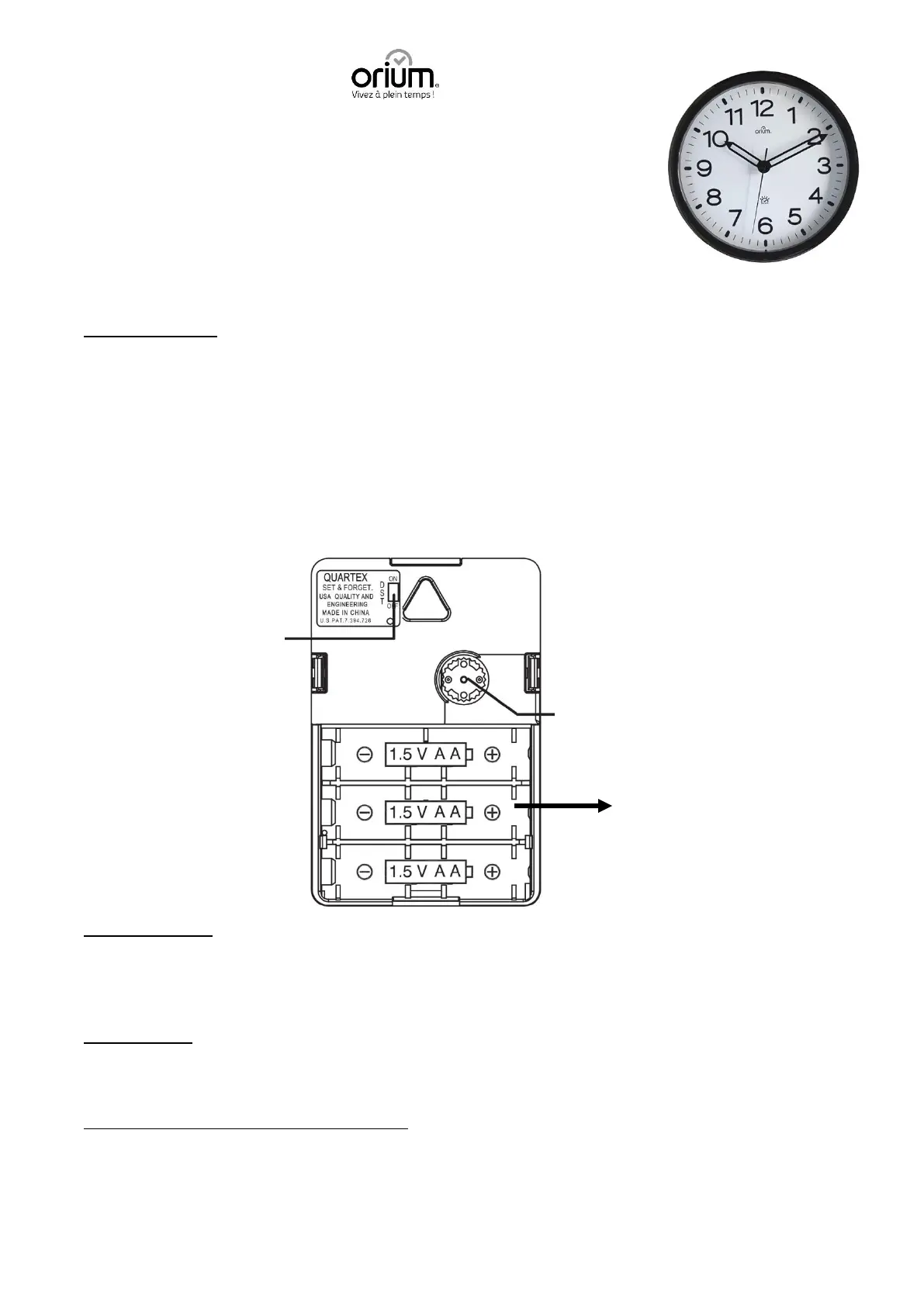 Plaats de 3 LR6 batterijen (niet meegeleverd) aan de achterkant van de klok in de