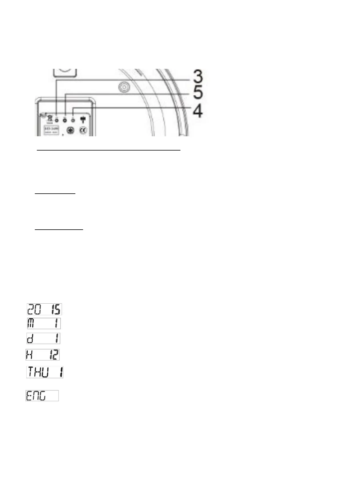and hold the RESET button (5) for 3 seconds, the clock will go to 12 o’clock and start receiving the radio