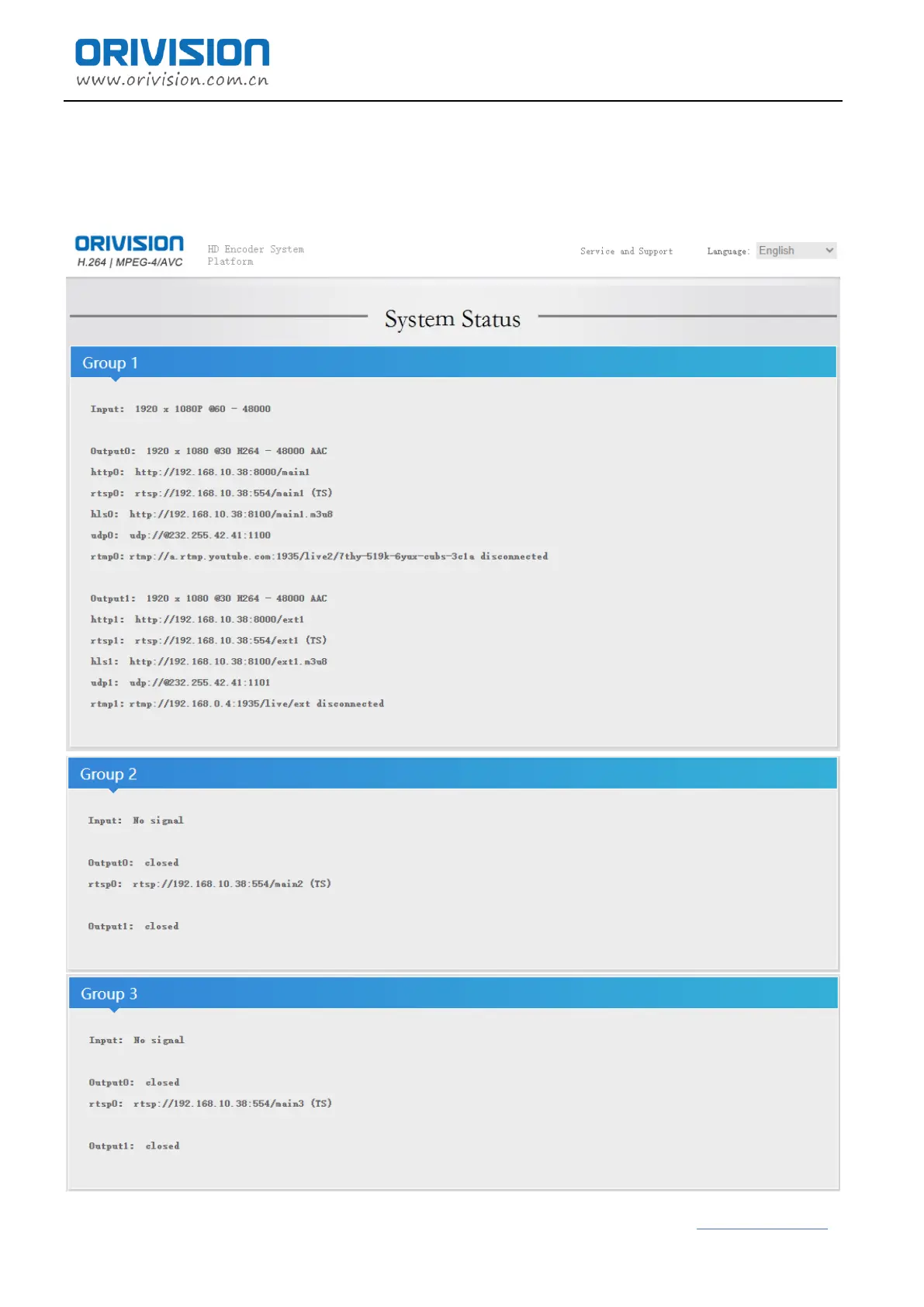 Orivision EH404 - Encoder Control Interface Navigation; System Status Monitoring