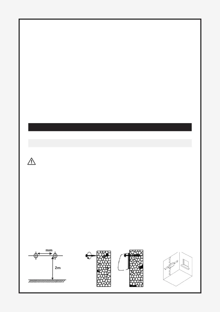 (for example water pipes) near the drill holes. Make sure that the appliance