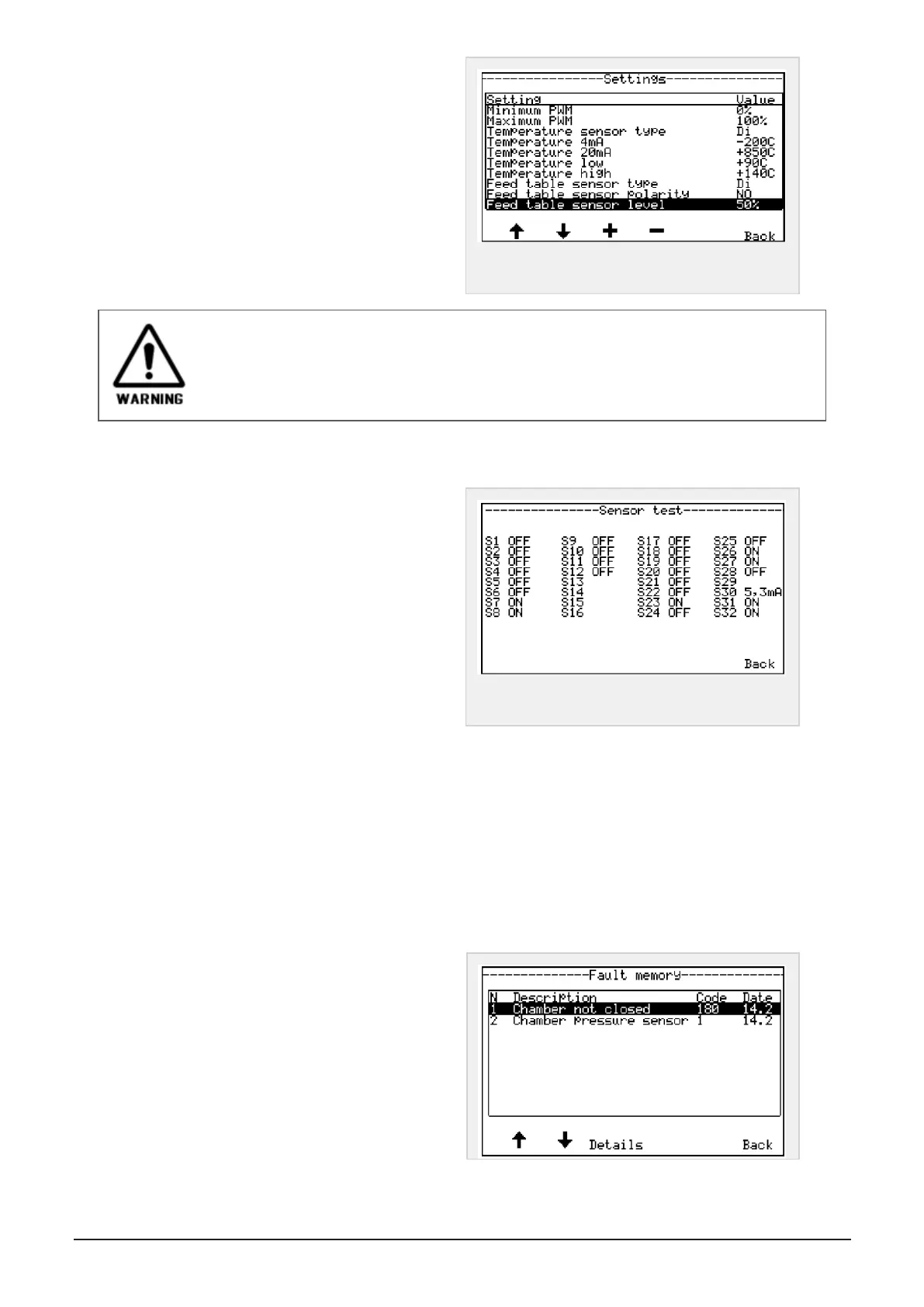 6.1.8 Error messages memory