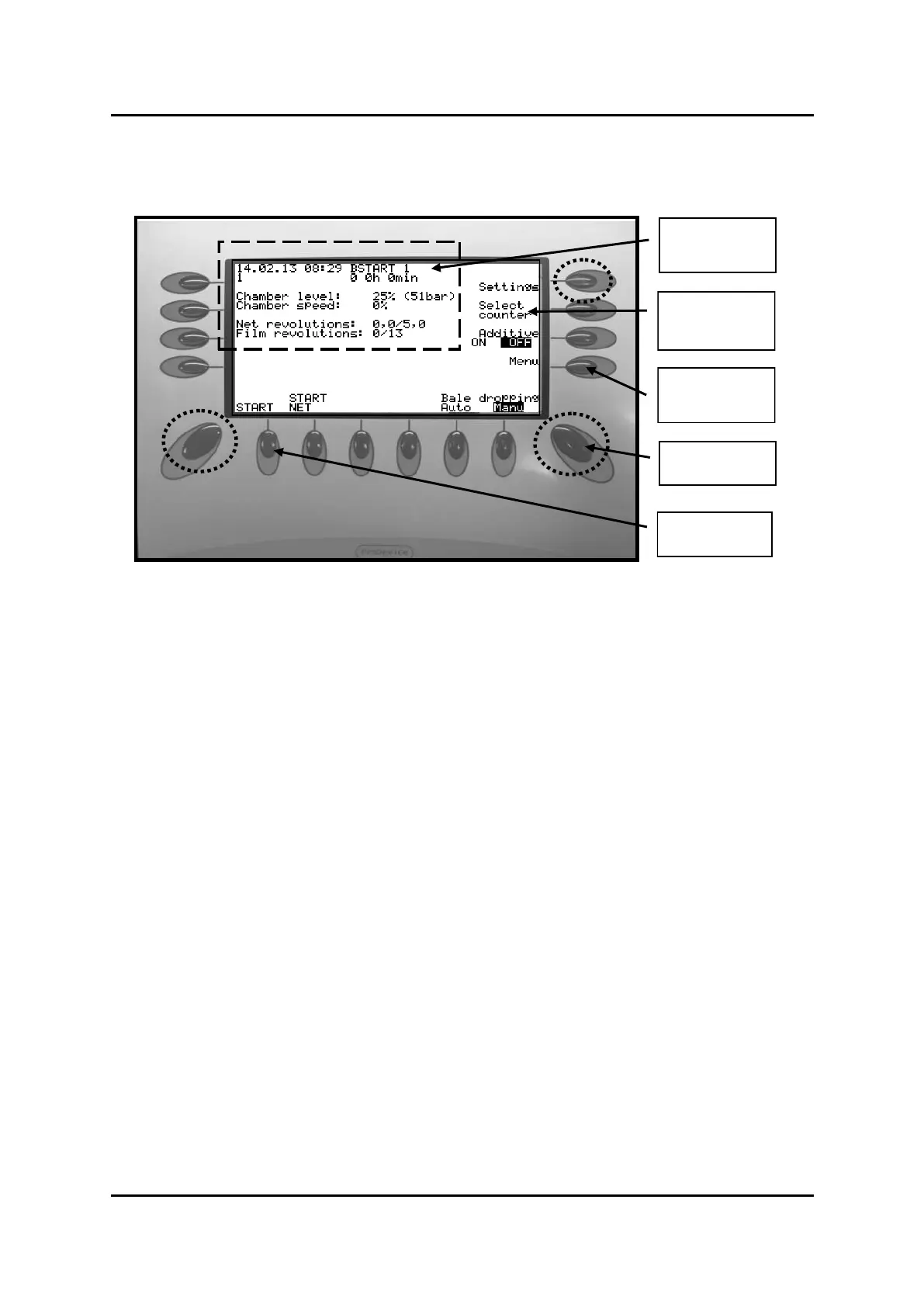 unload the bale. To get started in “AUTO” again, the control box must be restarted.