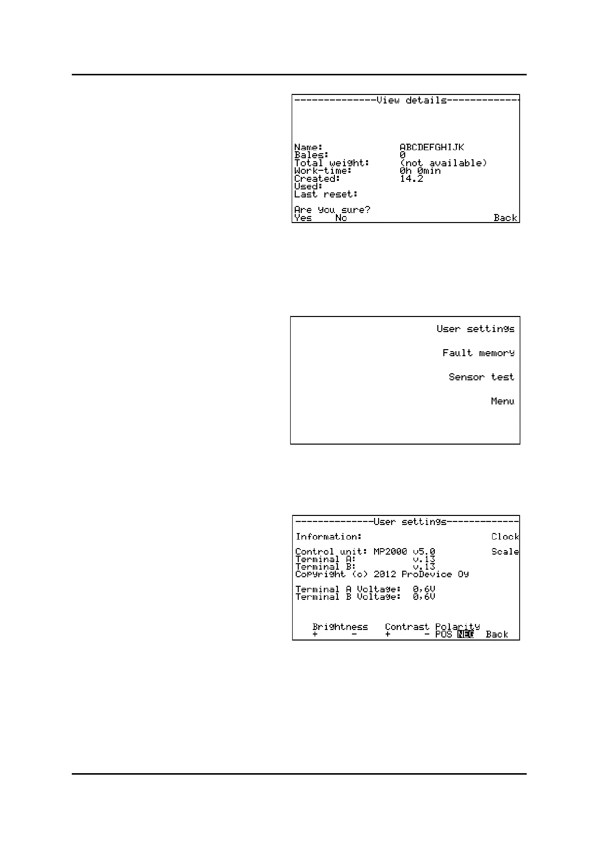 To calibrate scale for bale on table, if installed. Choose buon. (Not in use)
