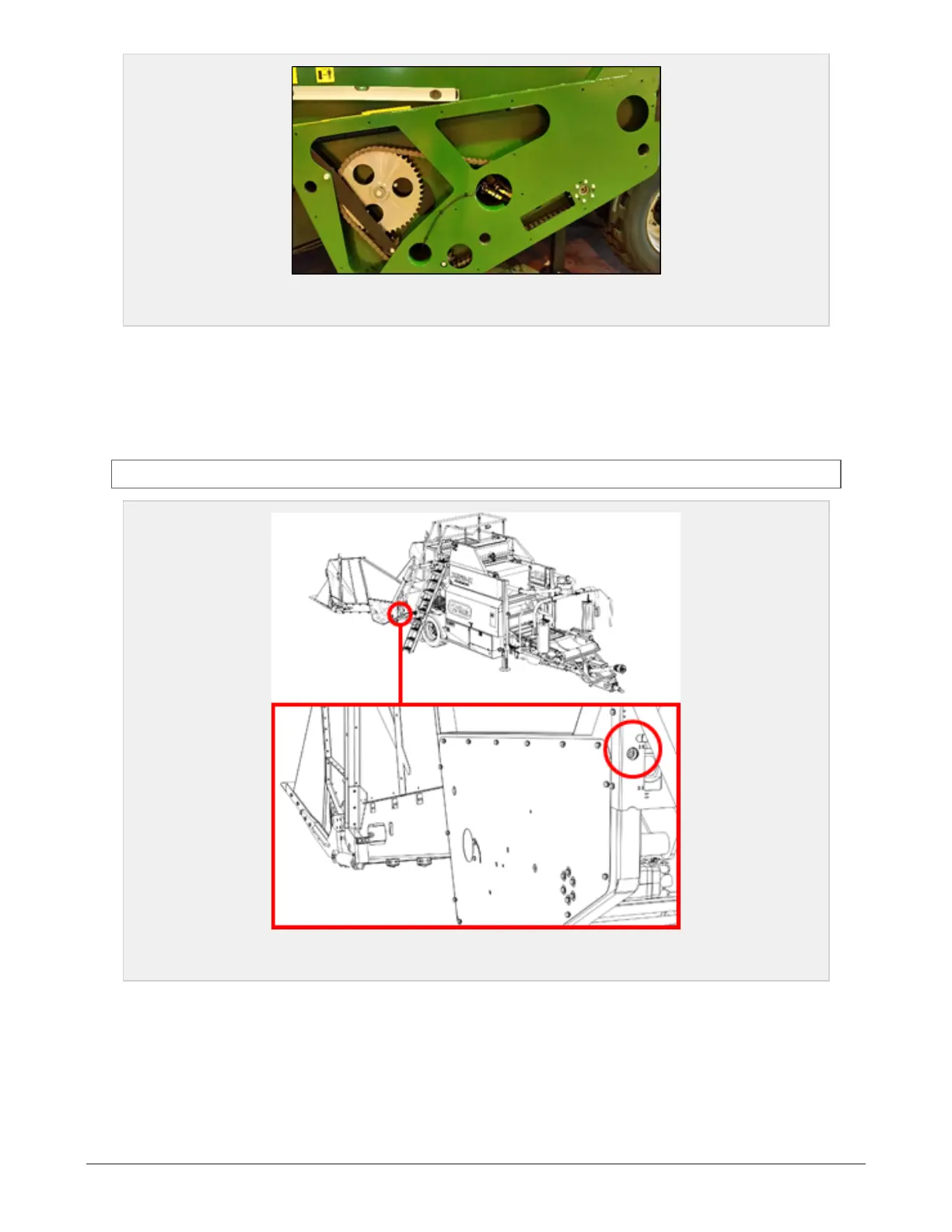 IMPORTANT: The hopper halves must be lowered all the way to the ground before one can adjust the chain.