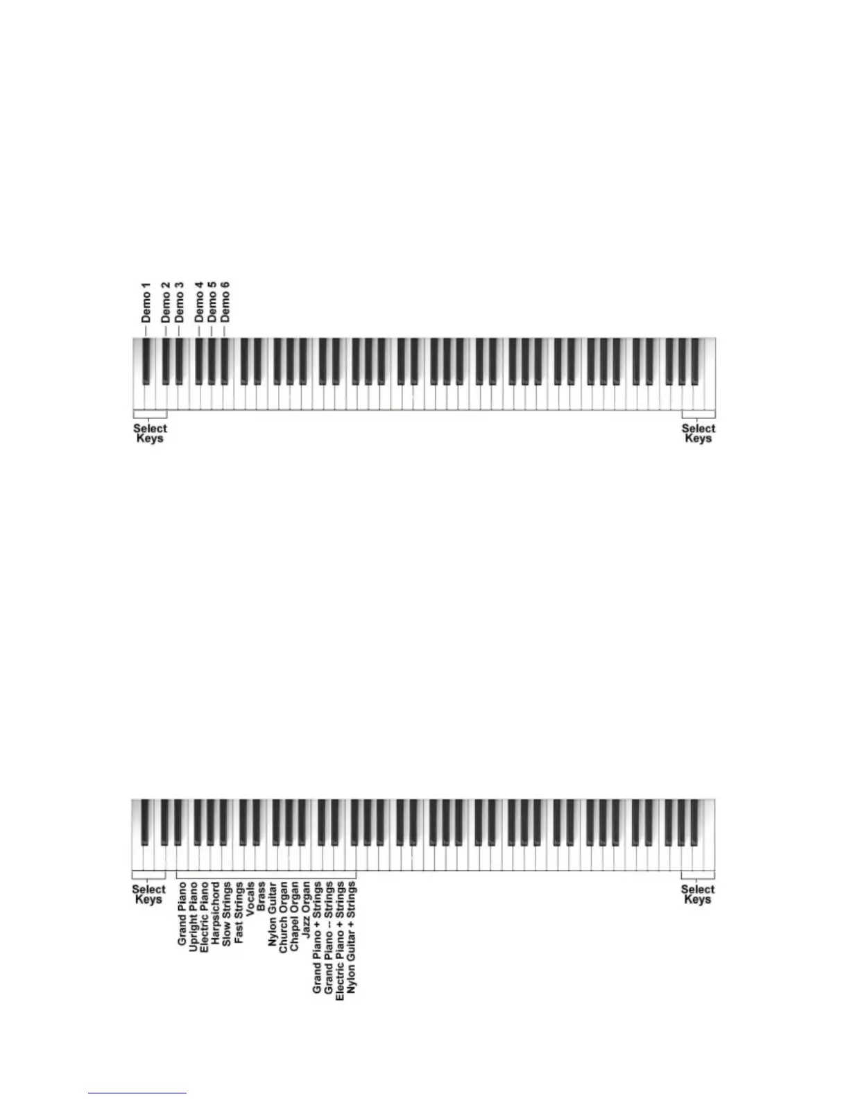 Per interrompere la Demo Song tenere premuti i 3 tasti bianchi SELECT e il tasto relativo alla