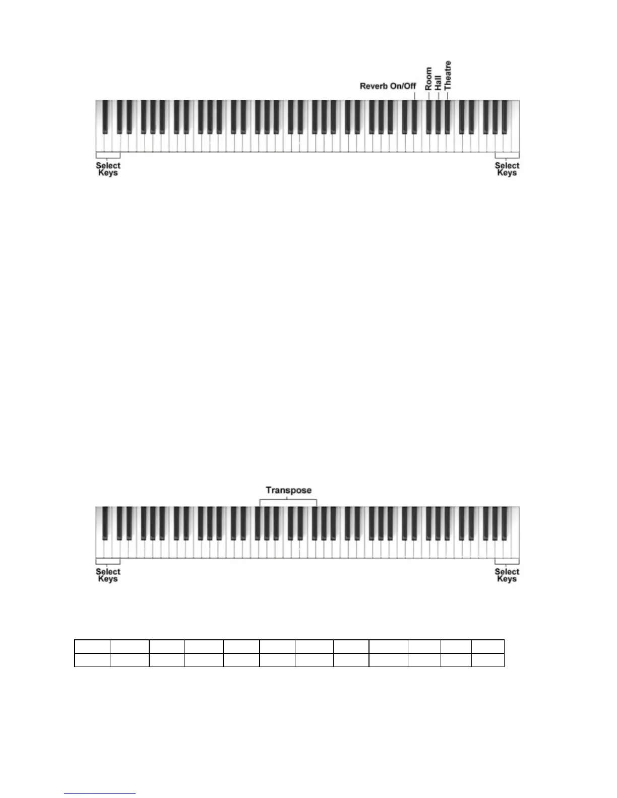 4. Per selezionare REVERB OFF, tenere premuti i 3 tasti bianchi SELECT e premere il tasto Re5#.