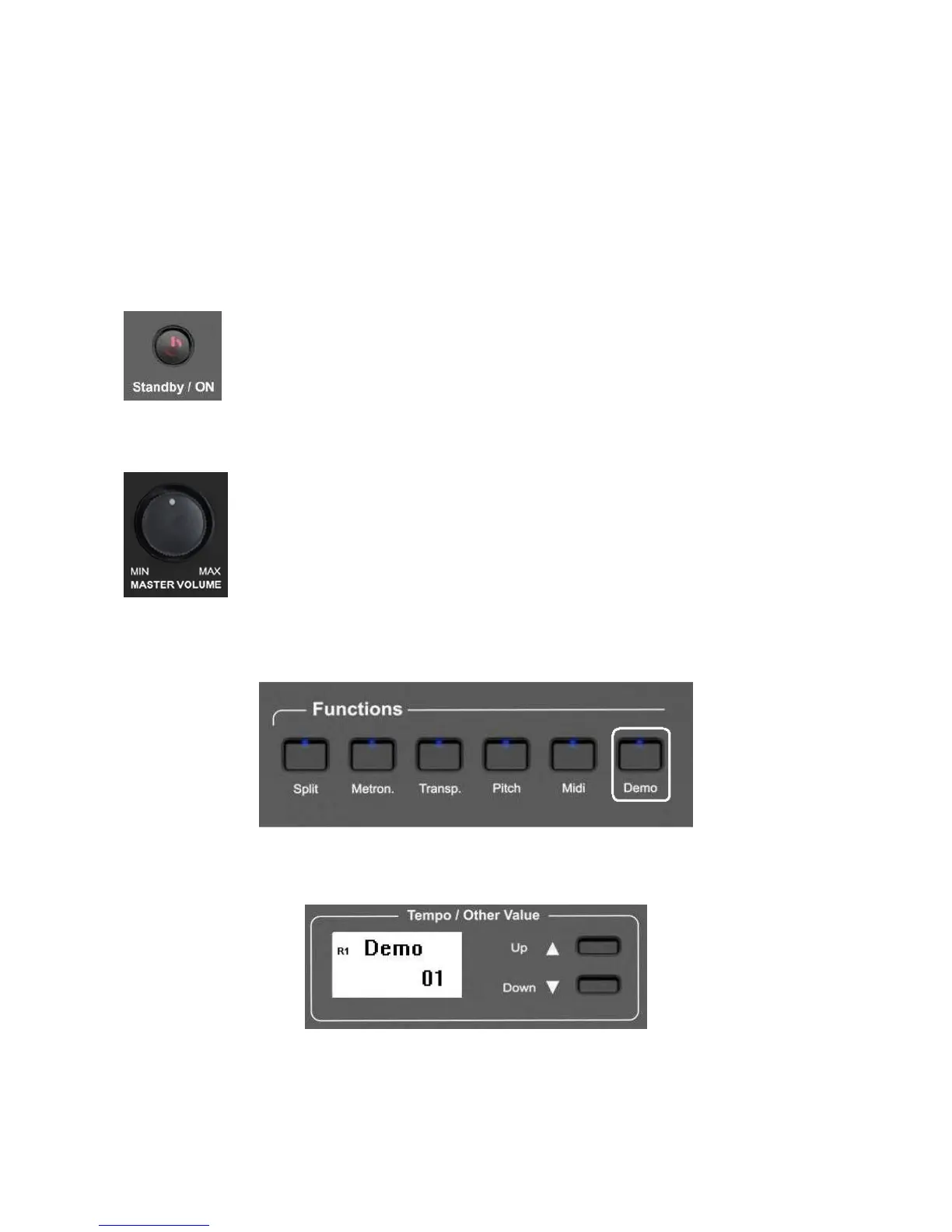 At the end of the selected Demo Song the instrument will automatically play the next Demo Song.