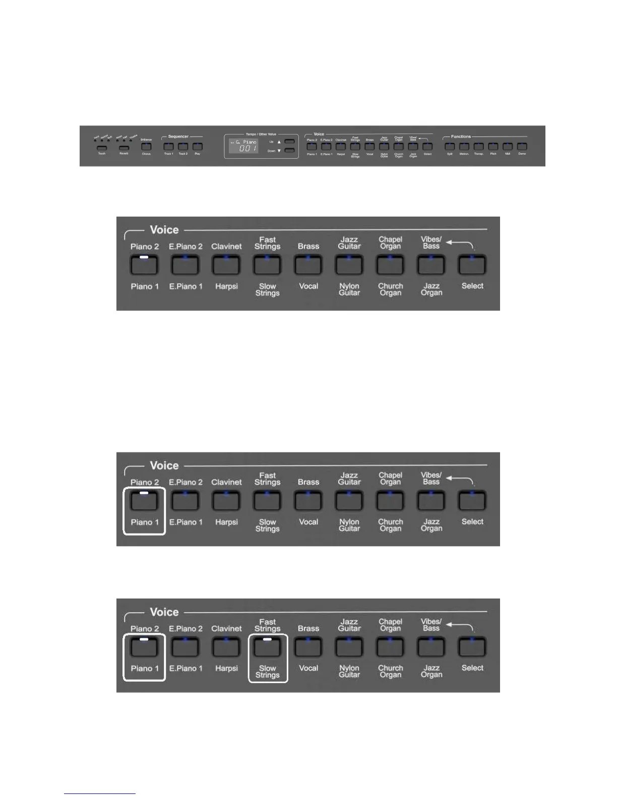 It is also possible to play two sounds at the same time, for example PIANO 1 and SLOW