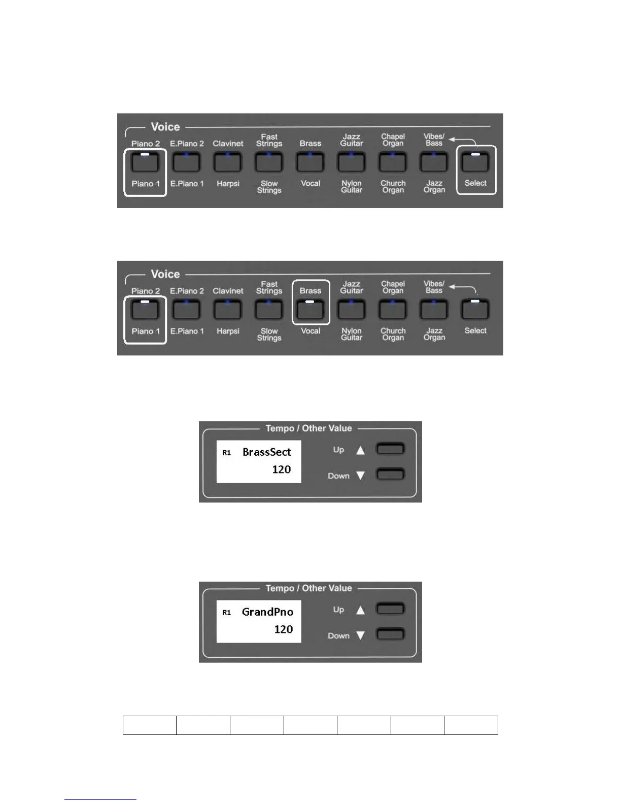Release now the SELECT button and while holding the PIANO1 button press the BRASS