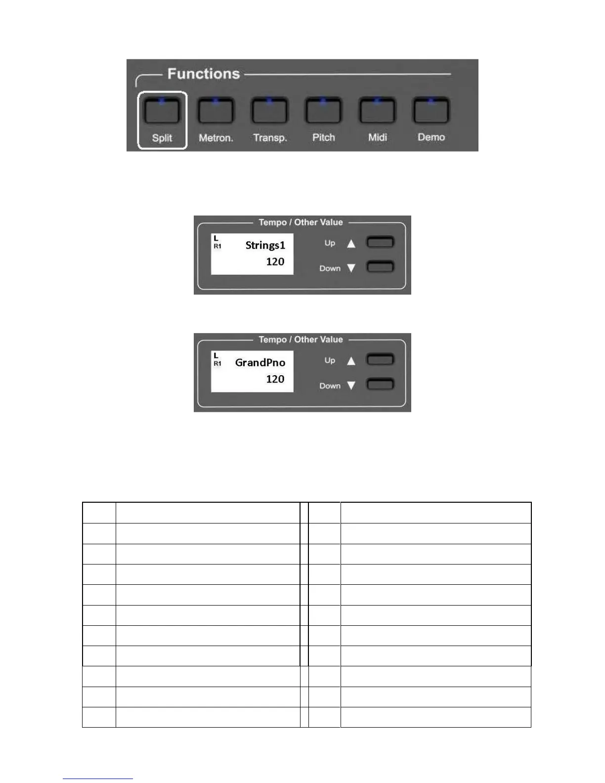 After a few seconds the SPLIT button Led will stop blinking and the display will indicate: