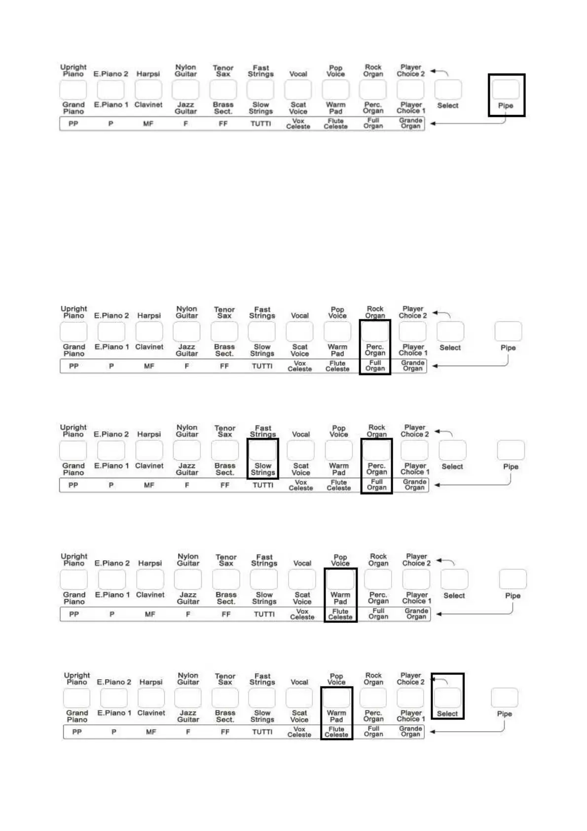 To select the Pipe voices it is necessary to press the PIPE button on the RIGHT of the Voice