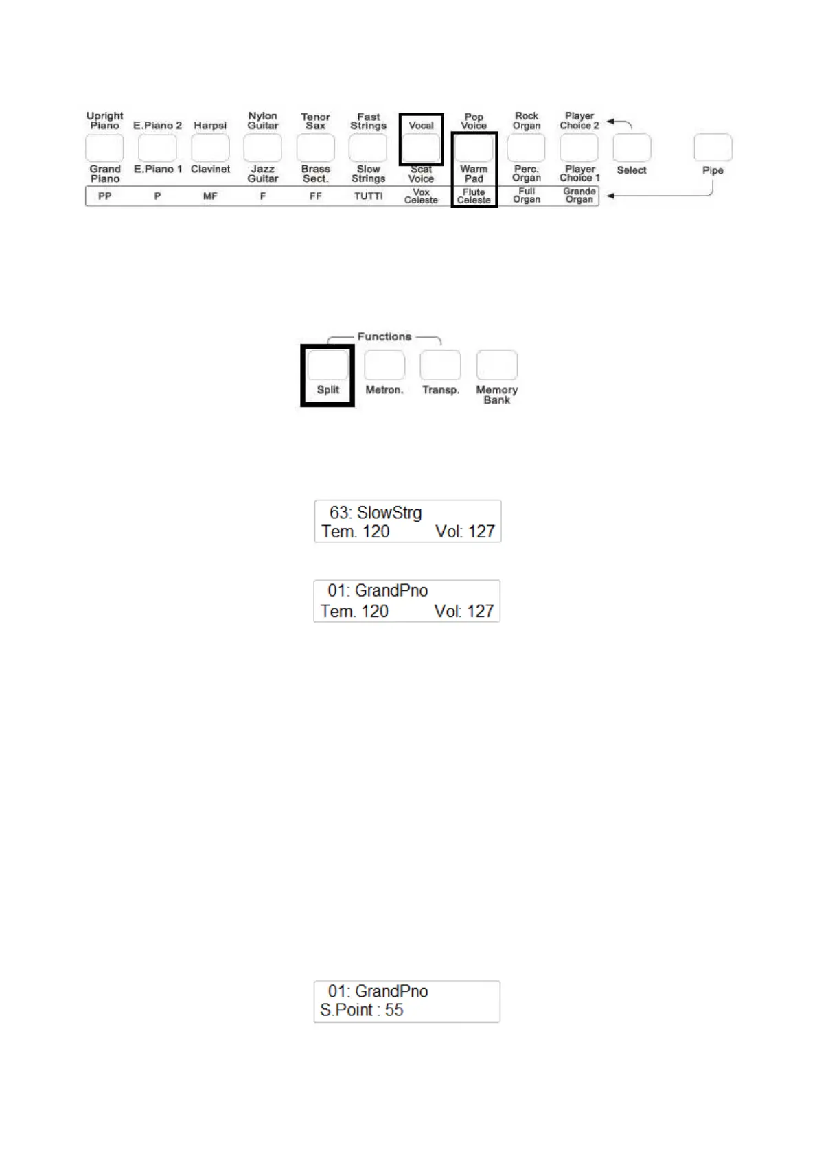 After you have selected the voice wait a few seconds until the SPLIT button Led stops blinking.