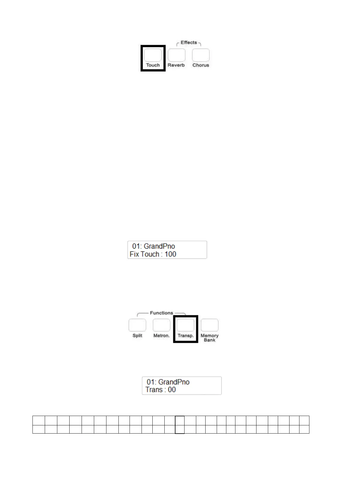 When TOUCH button is switched Off, the keyboard will play without touch sensitivity at the fixed