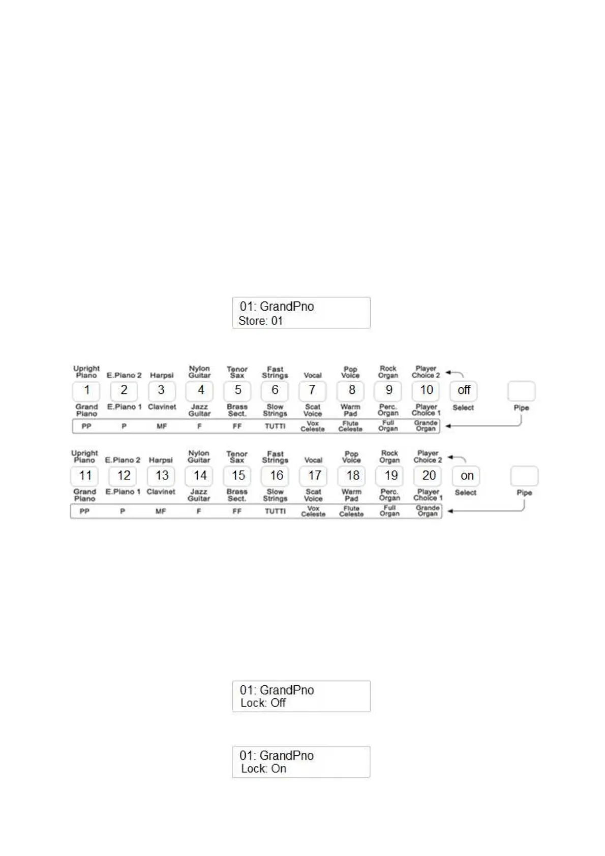 It is possible to store up to 20 memory registrations in the instrument and recall them at your
