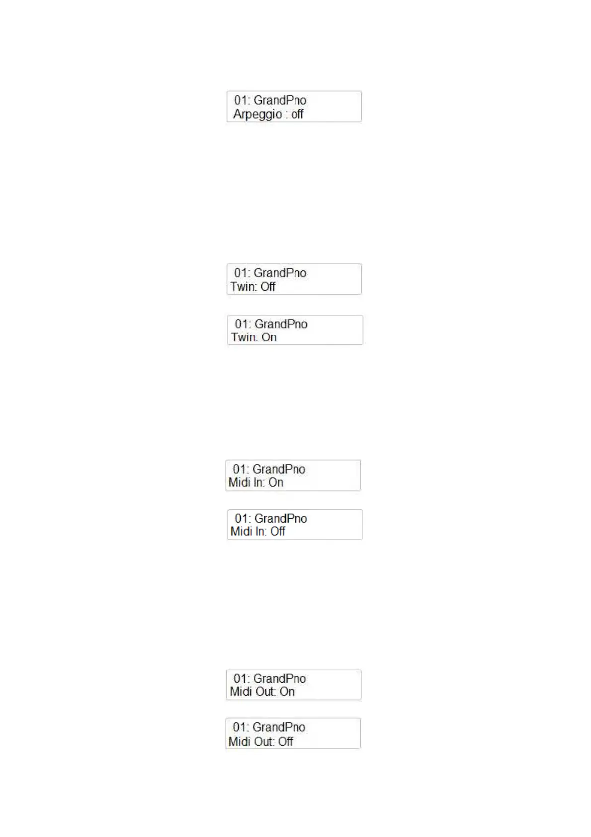 E’ possibile settare il Midi In On o Off.