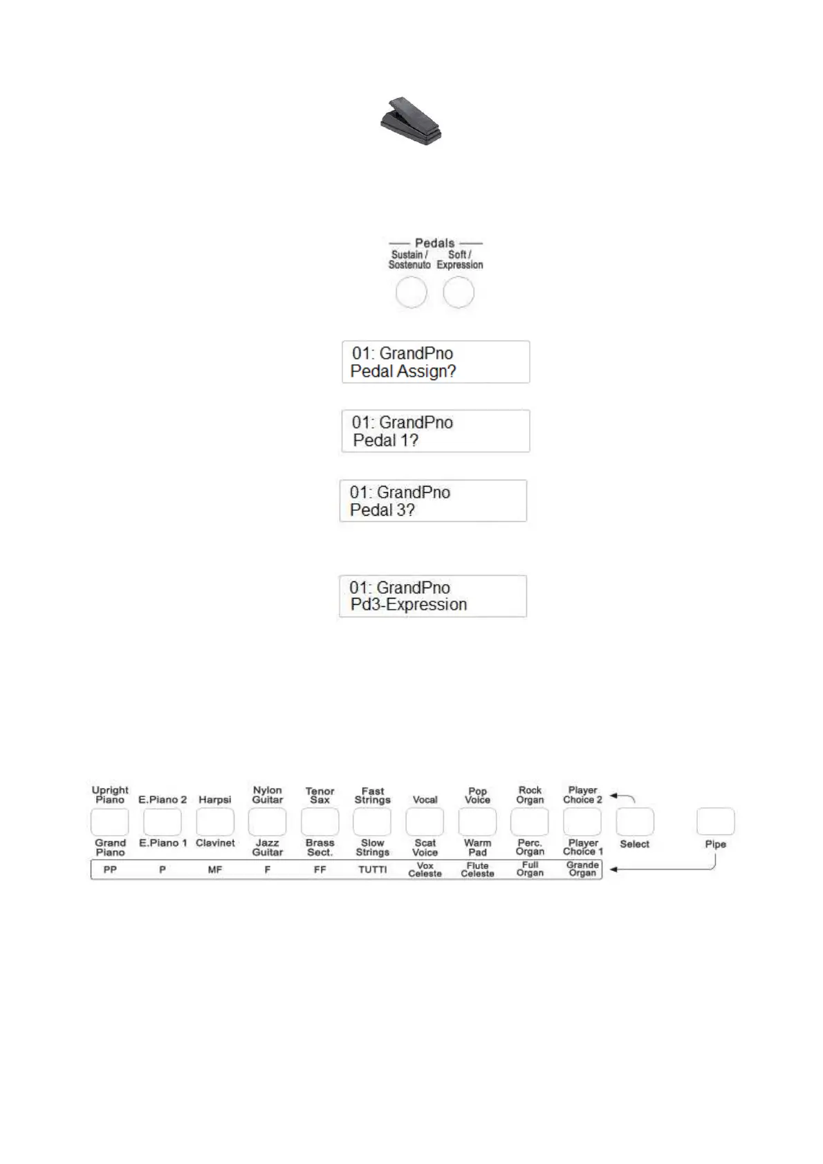 Das Lautstärkepedal kann nun mit dem Instrument verwendet und die Lautstärke auch während des