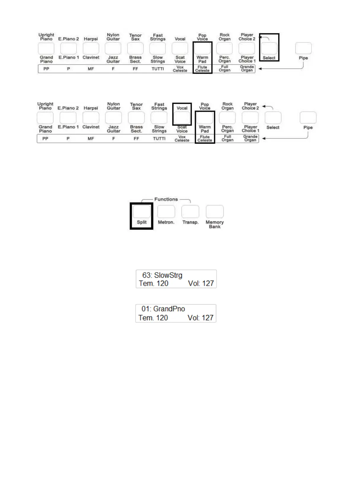 wählen einen neuen Klang von den verfügbaren Tasten aus.