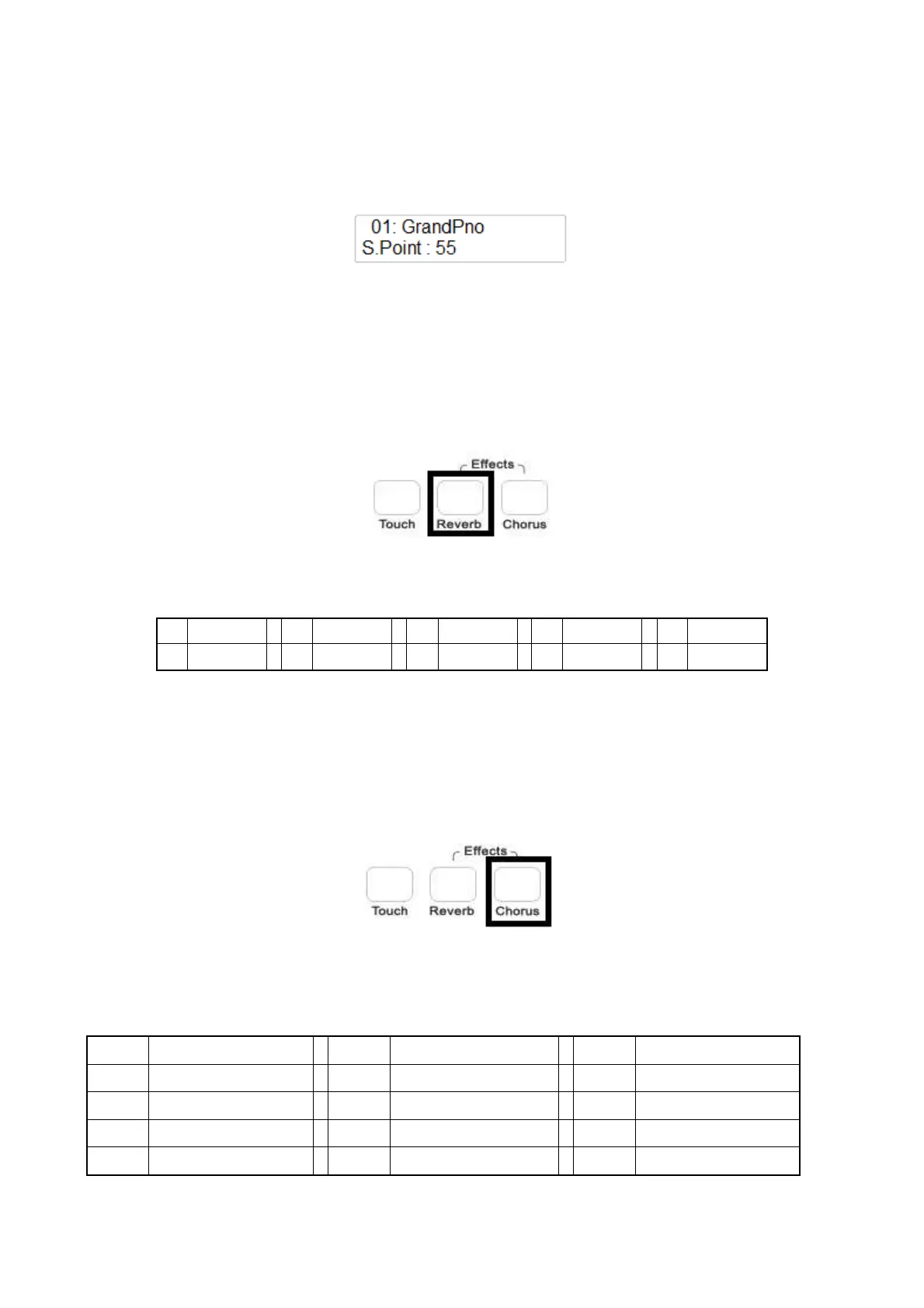 Beim Einschalten des Instruments wird die CHORUS Taste immer ausgeschaltet sein.