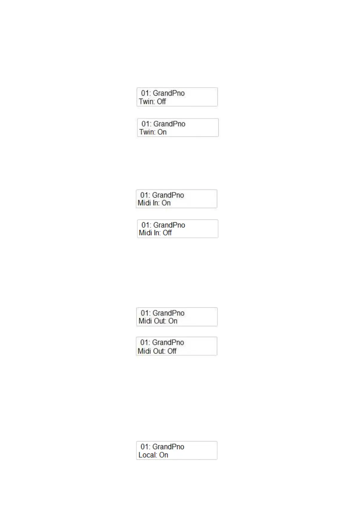 Diese Einstellung kann MIDI LOCAL ON oder OFF schalten. Schaltet die interne Klangerzeugung