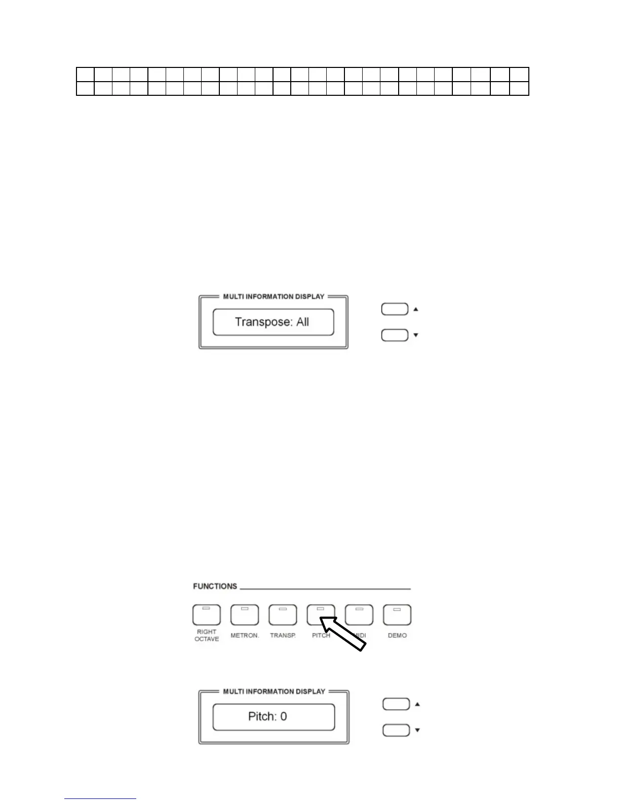 Press the TRANSPOSE button for a few seconds and the display will indicate the available