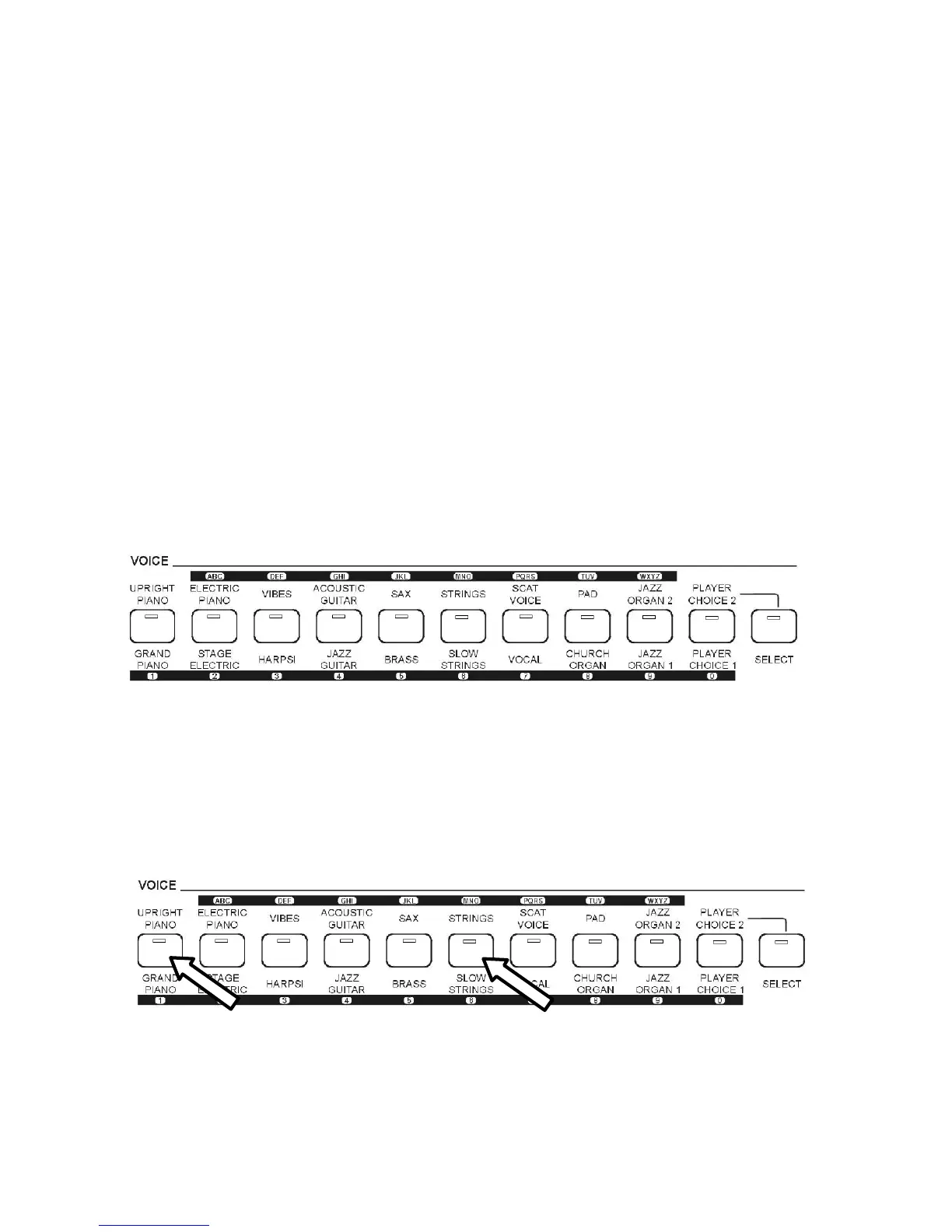 - While holding down the GRAND PIANO button also press the SLOW STRINGS button.