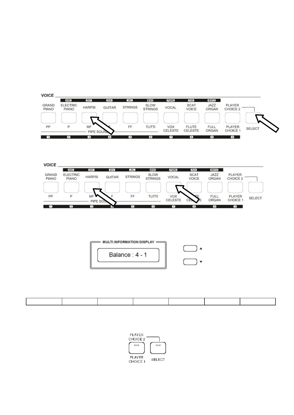 Use the [/\] and [\/] buttons it is possible to balance the two sounds according to the following