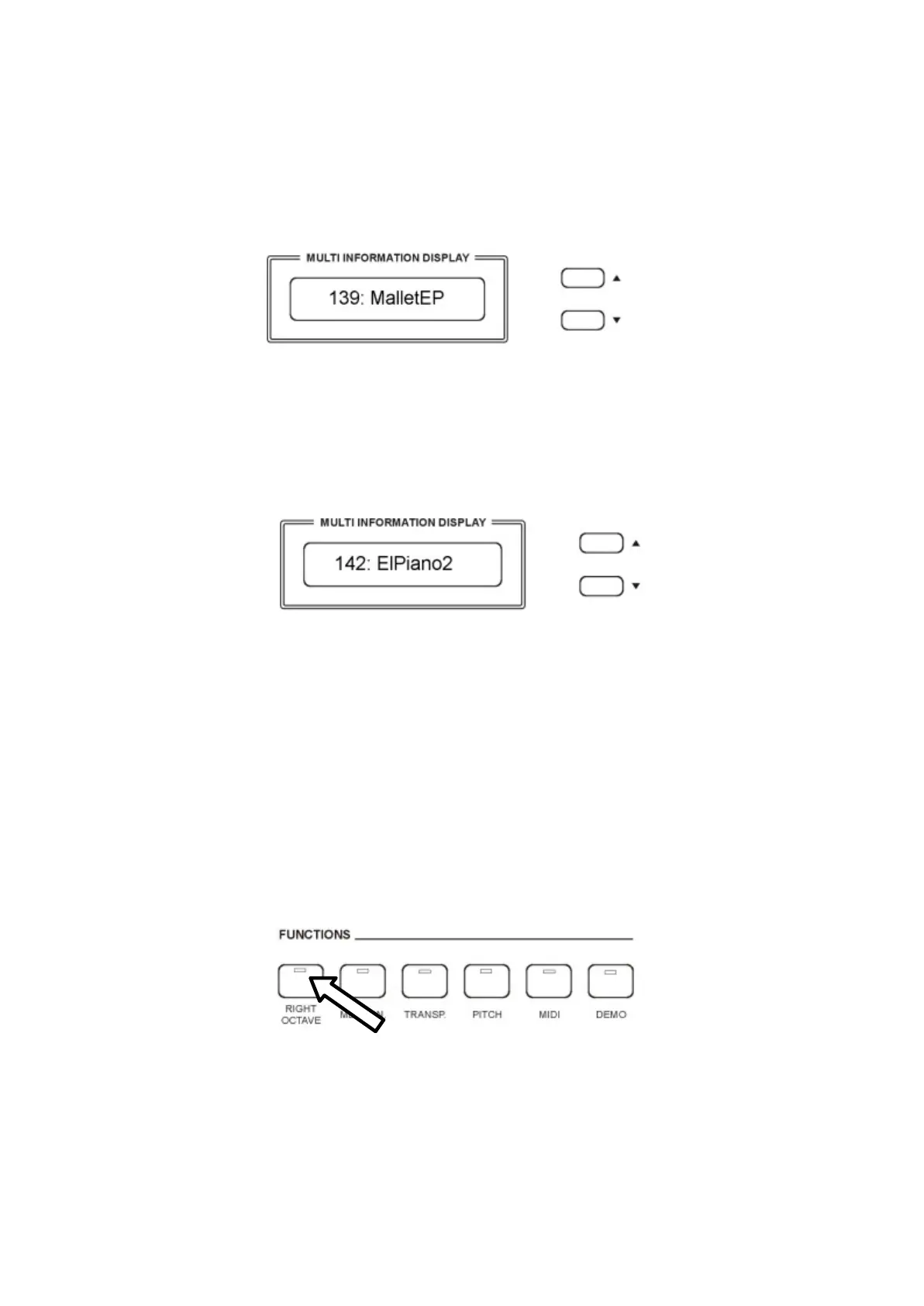 If the piano is playing in SPLIT mode, only the sounds of the right section will be played 1 Octave