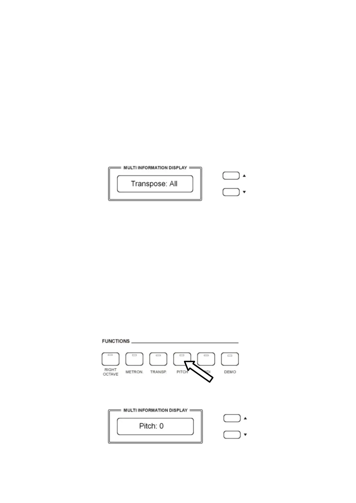 Premere il pulsante TRANPOSE per alcuni secondi ed il display indichera’ i settaggi disponibili.