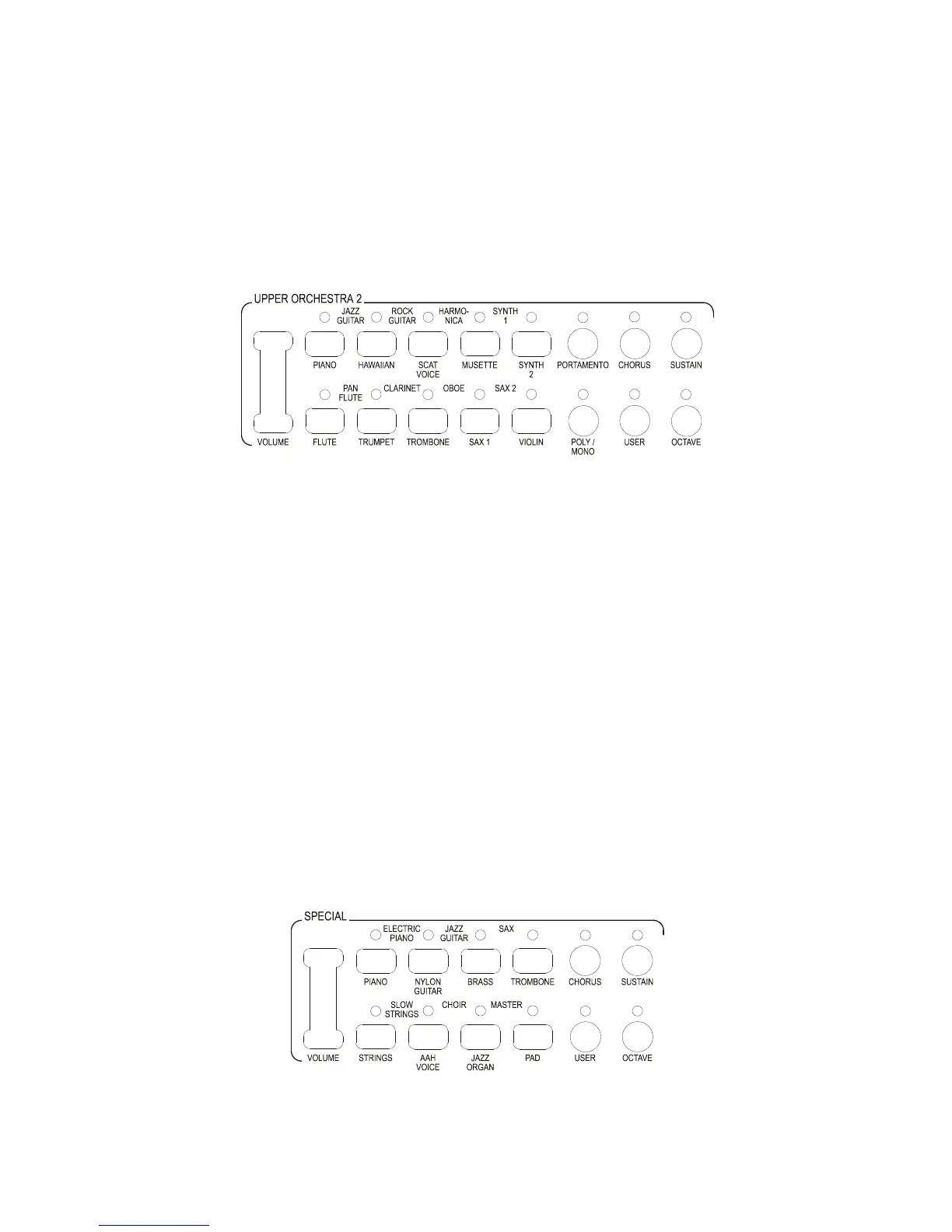 section. If Upper Orchestra 1 and Upper Orchestra 2 are both illuminated then the sounds in both