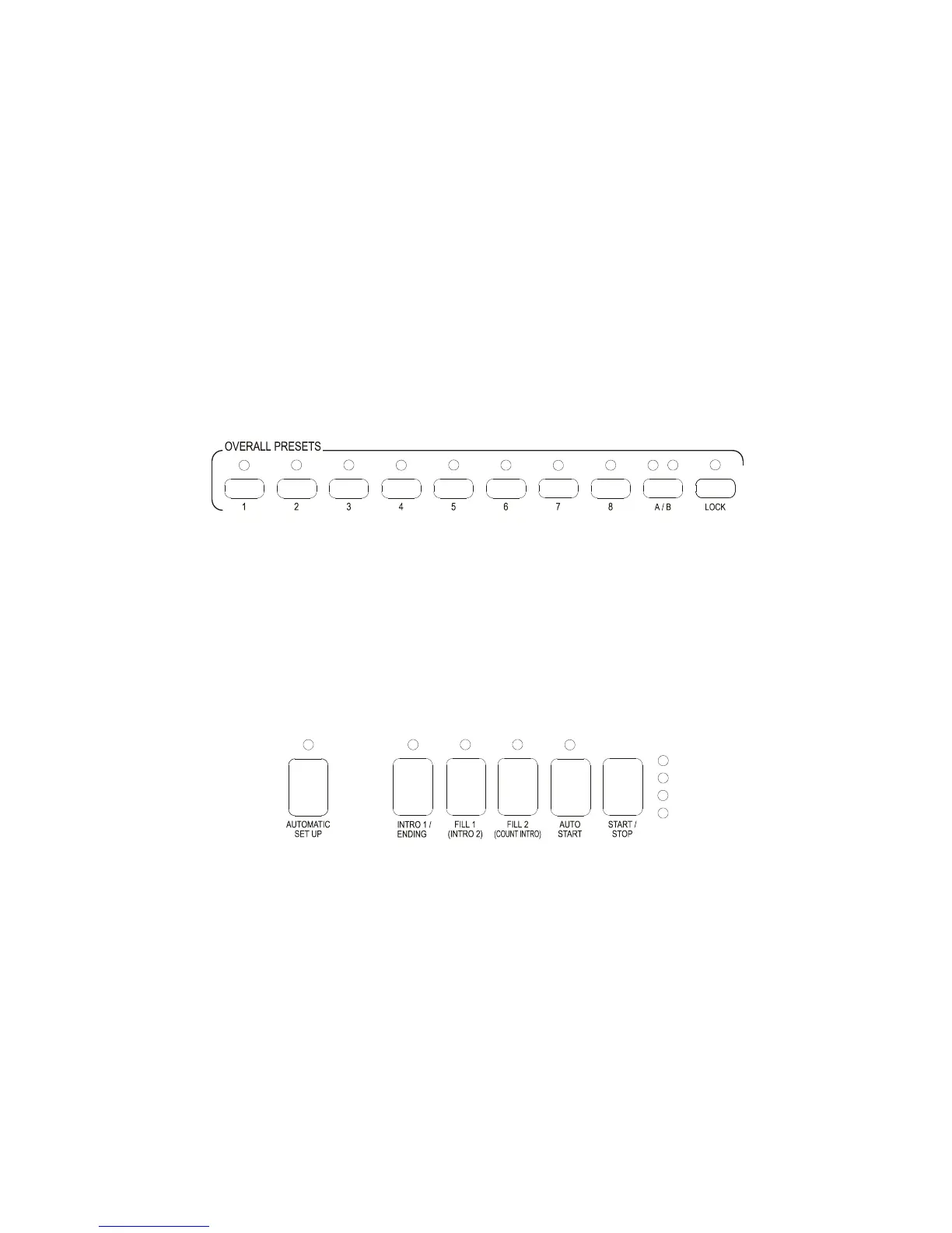 will be 8 electronic organ sounds in bank A of the Overall Presets. If the A/B bank button is depressed