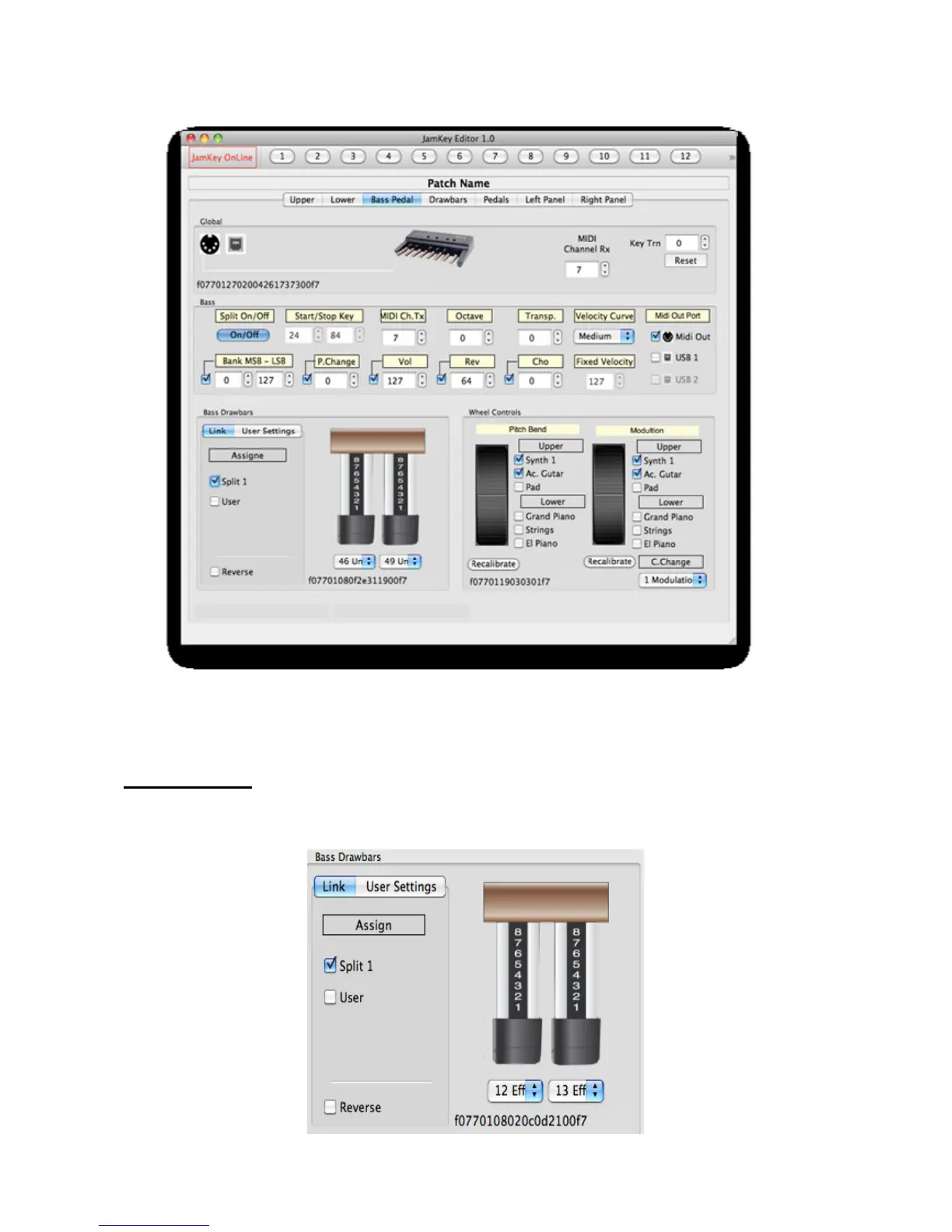 Orla Jamkey - Bass Control Configuration; Bass Drawbar Settings and Linking