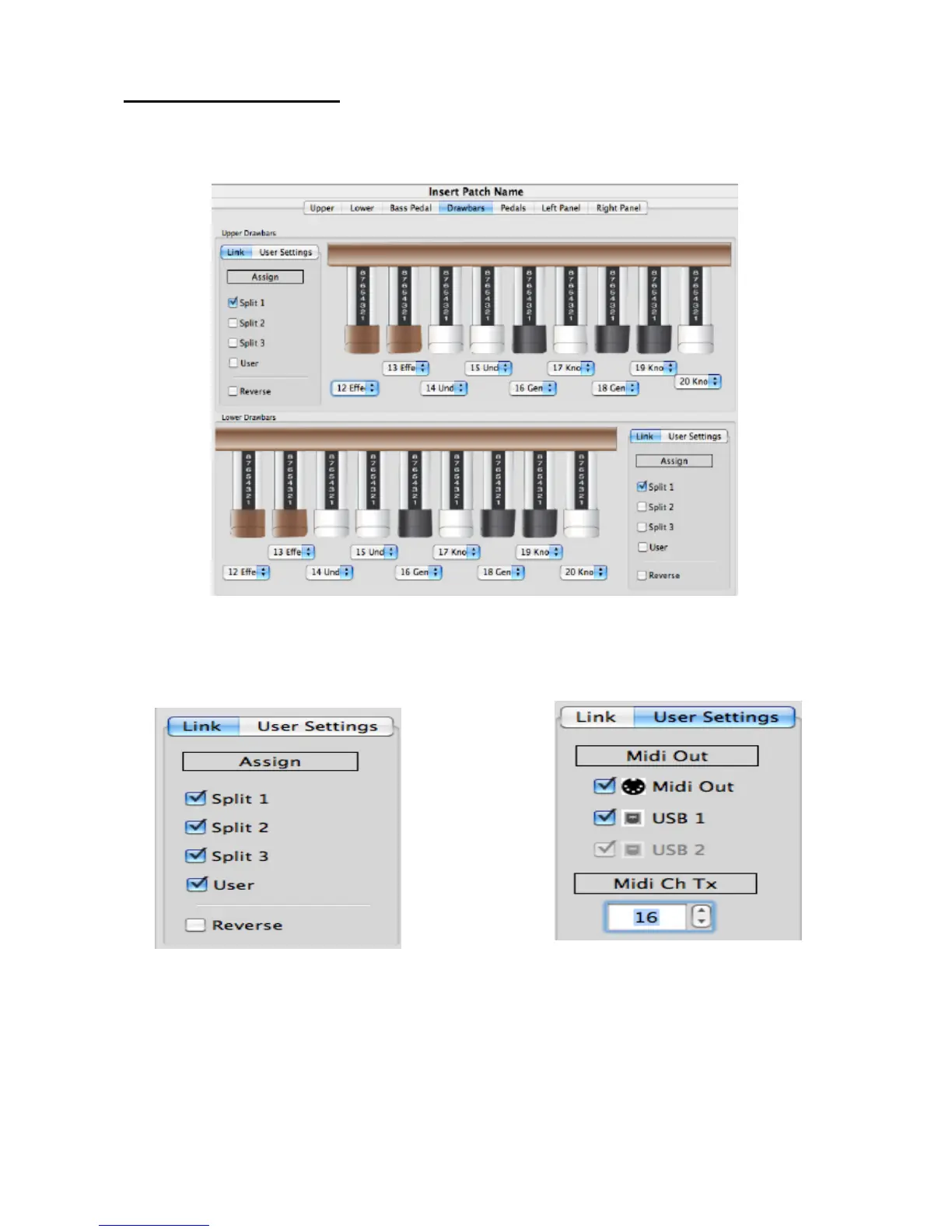 It is possible to make User Settings for Upper and Lower Drawbars: