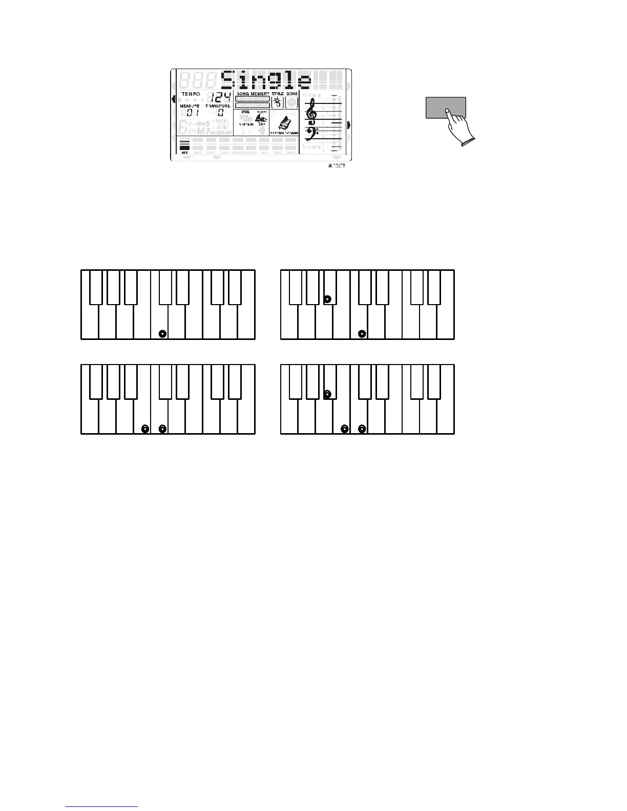 C 7th - press C + any white key to left C minor 7th - press C + any black and any white to left