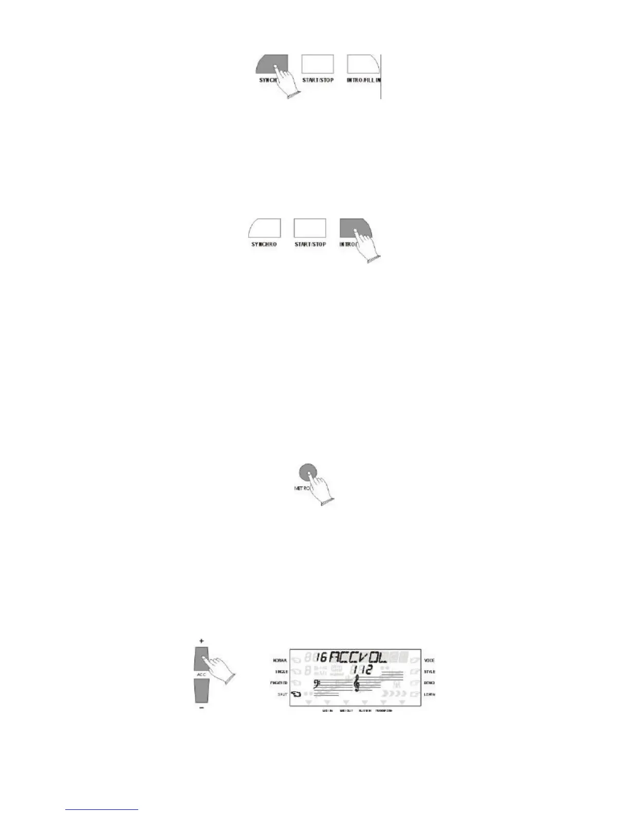 The [ACC+/-] buttons can be used to adjust the volume of the selected accompaniment .