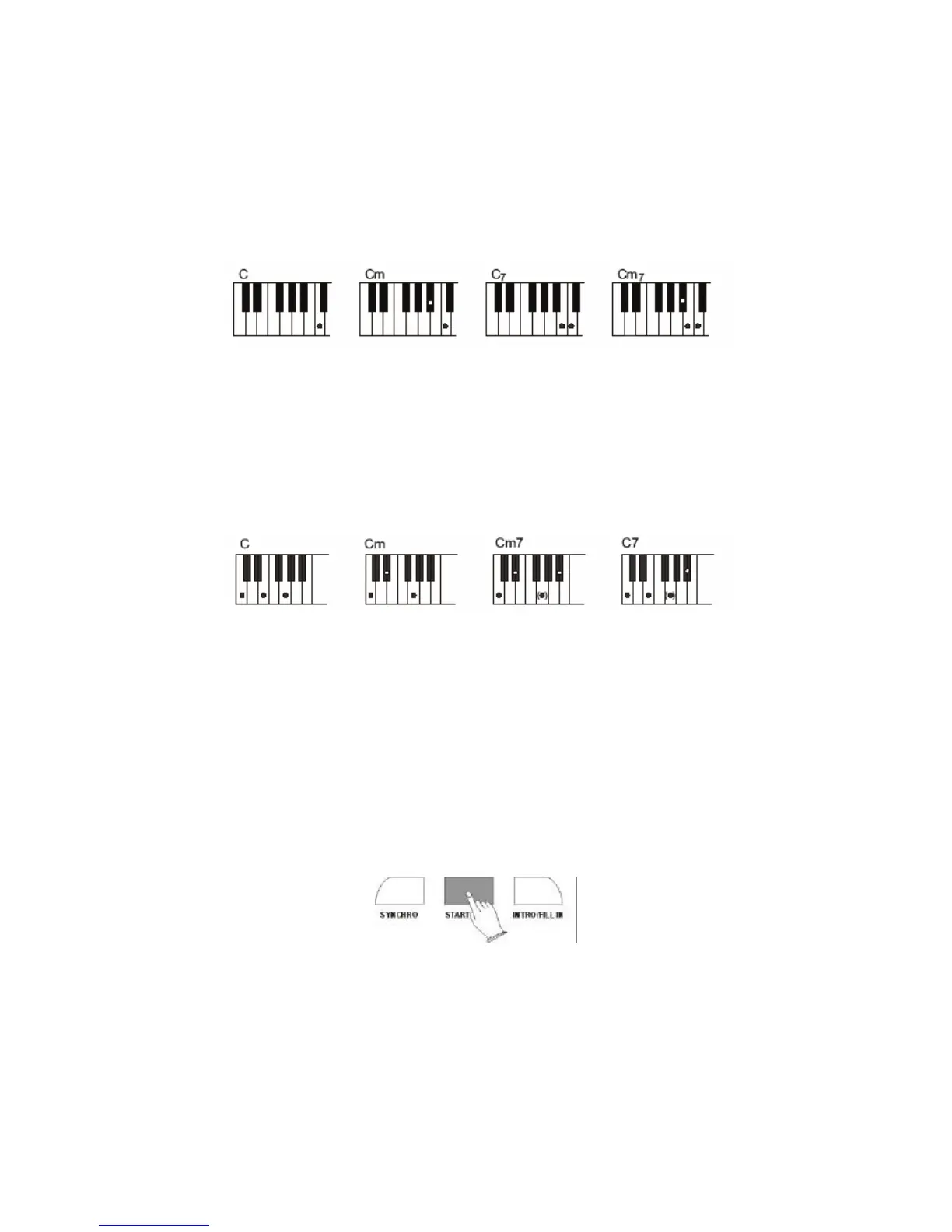 Per suonare l’accordo di DO7m premere il tasto DO ed i tasti BIANCO e NERO a sinistra più