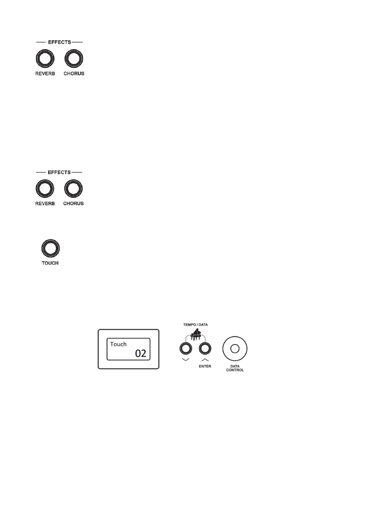 Il pulsante TOUCH permette di selezionare 3 diverse curve di sensibilità di tocco: