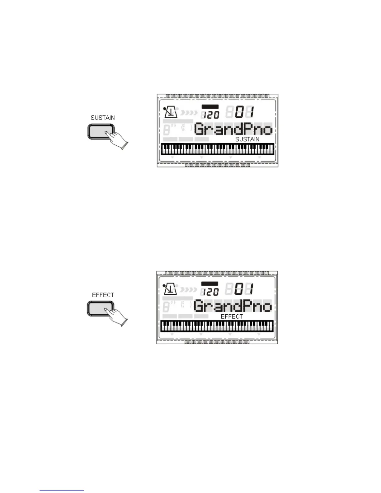 Premere il pulsante [SUSTAIN] per entrare nella funzione Sustain e il suo indicatore sarà