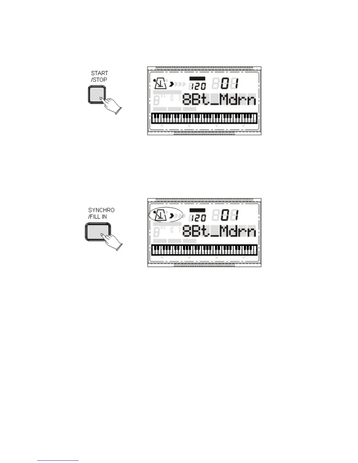 Premere il tasto [SYNCHRO / FILL IN] per entrare in modalità “Sync/Start”. Quando la