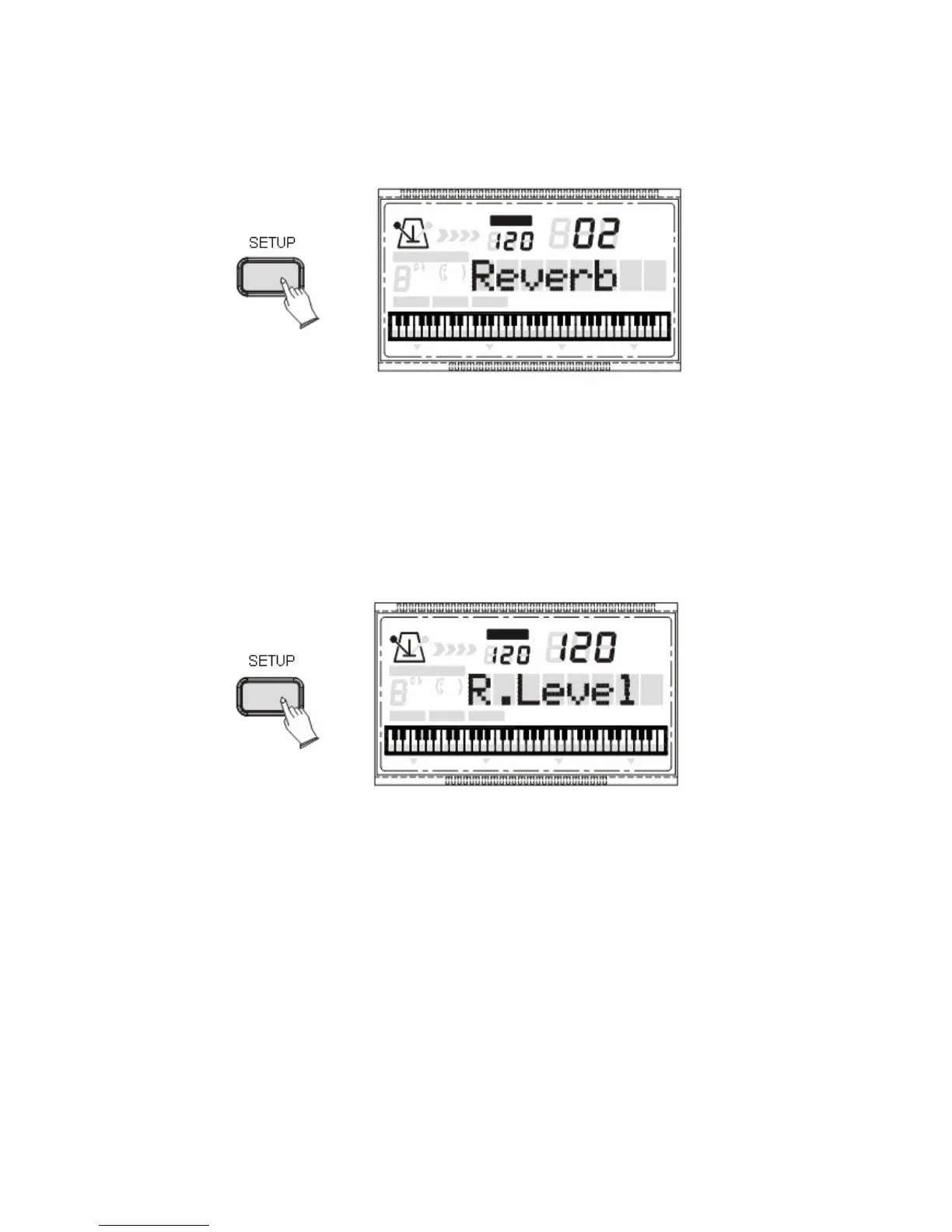 Premere il pulsante [SETUP] per selezionare “Reverb”, quindi usare i pulsanti [+] e [-] oppure i