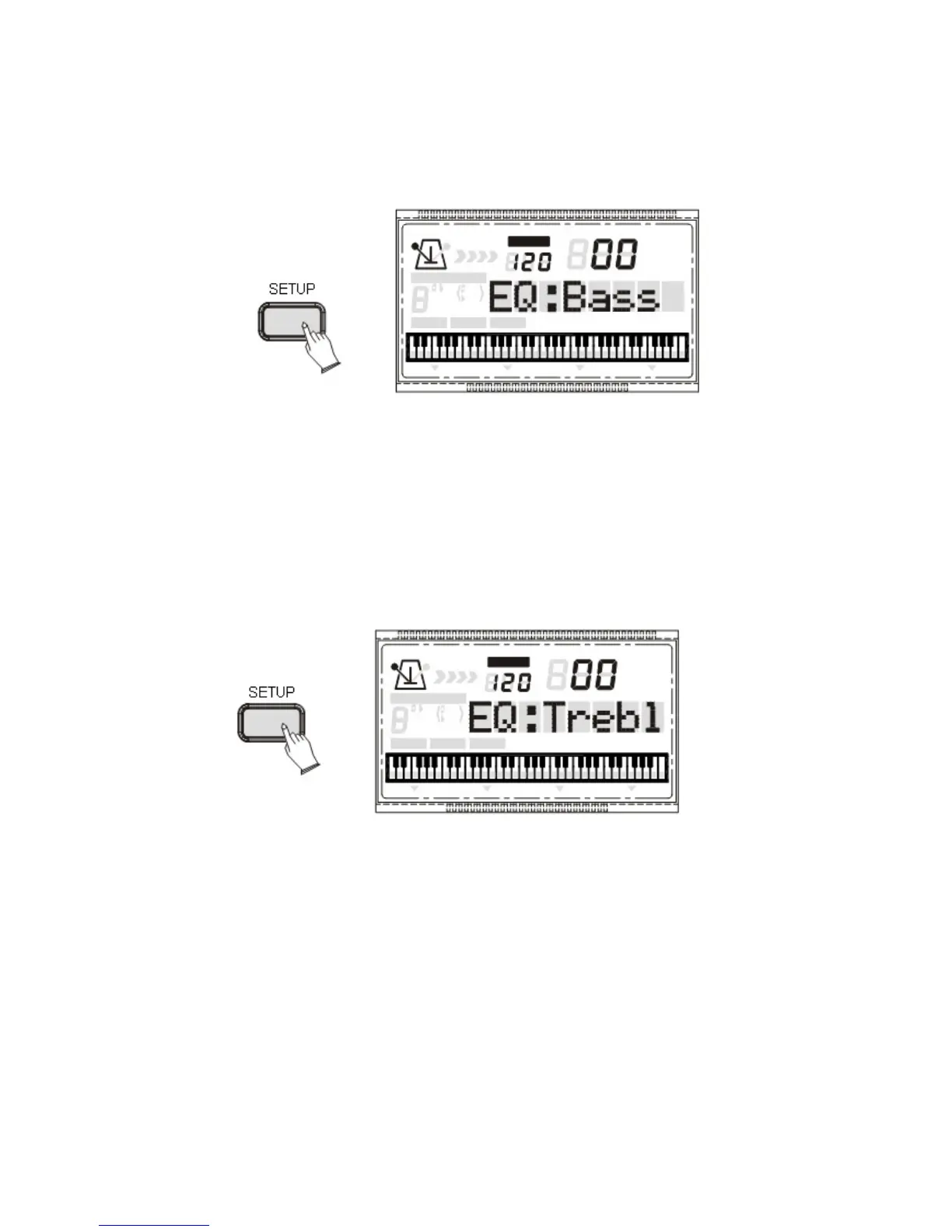 Premere il pulsante [SETUP] per selezionare “EQ Trebl”, quindi usare i pulsanti [+] e [-] oppure