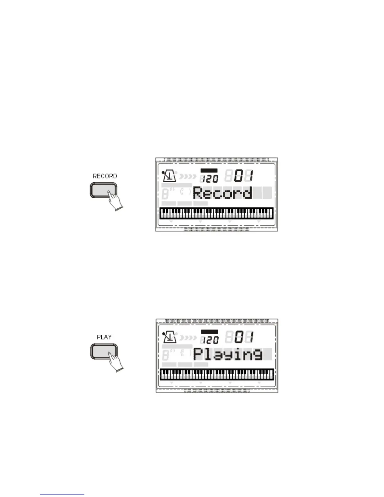 Premere il pulsante [RECORD], il display LCD visualizzerà:“Record”.