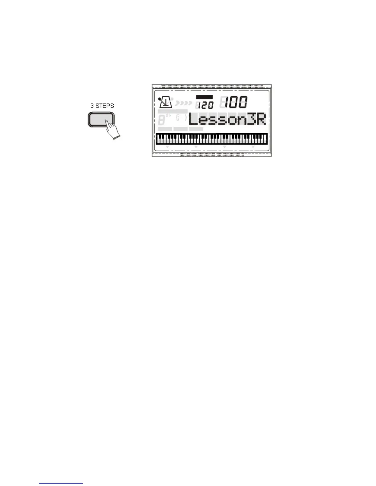 Premere il pulsante [3 STEPS]. Il display LCD visualizzerà: “Lesson 1R”.