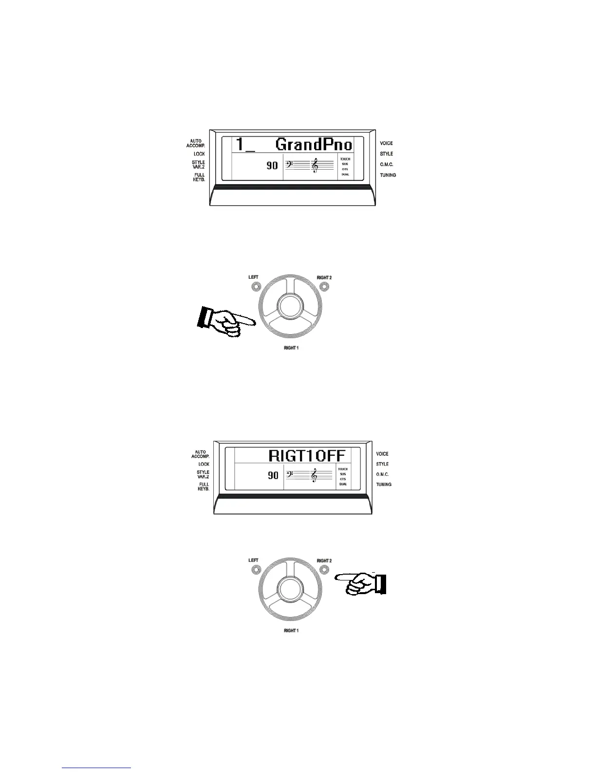above. The name of the RIGHT 1 sound will be indicated on the display.