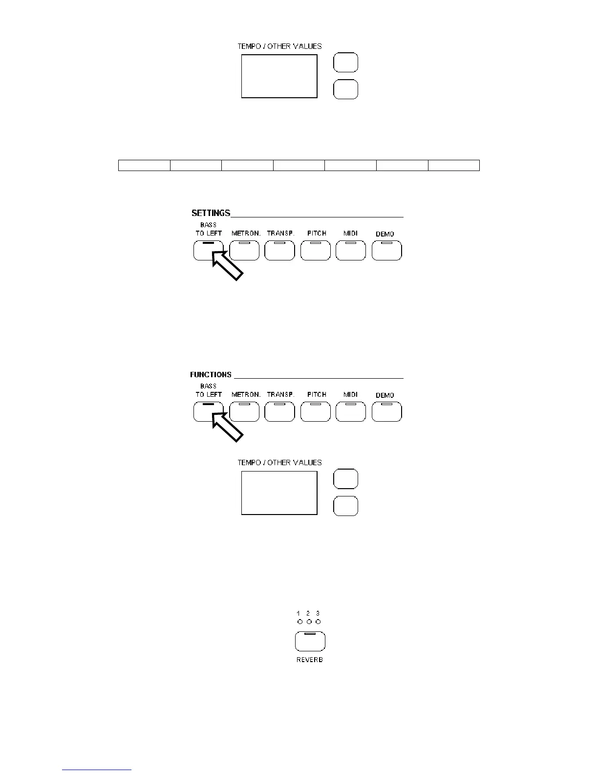 Quando il pulsante BASS TO LEFT viene premuto lo strumento divide automaticamente la tastiera