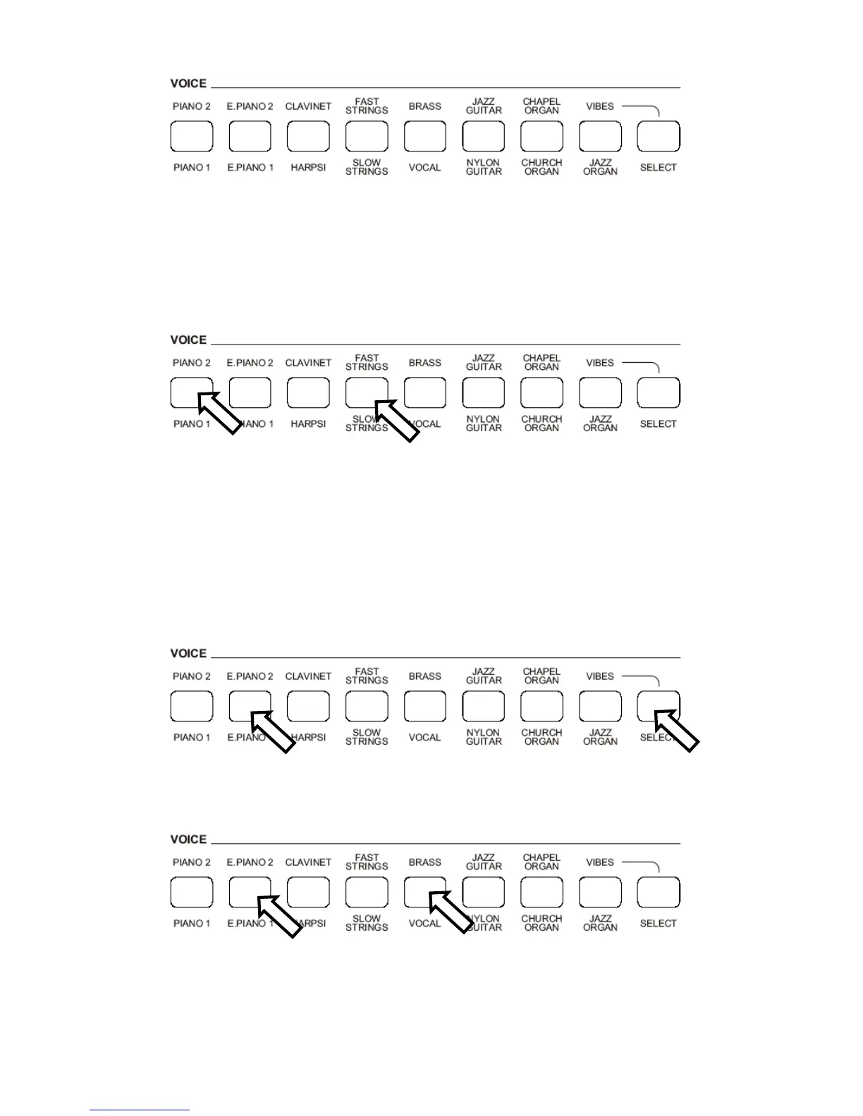 - Lassen sie den Taster “SELECT” los und betätigen Sie – während der Taster “E.PIANO1“