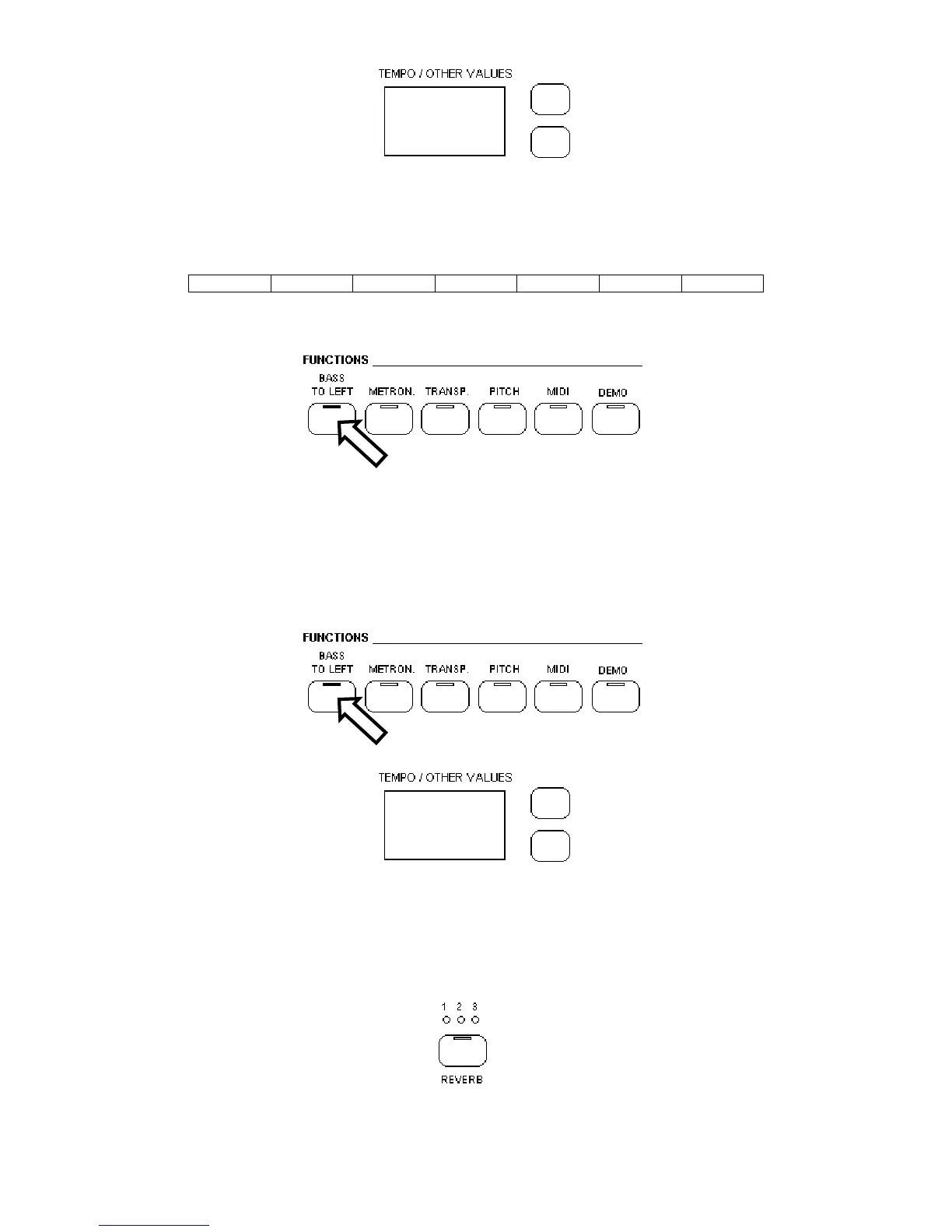 Wenn der “BASS TO LEFT”-Taster angewählt wurde, ist die Tastatur automatisch geteilt und der