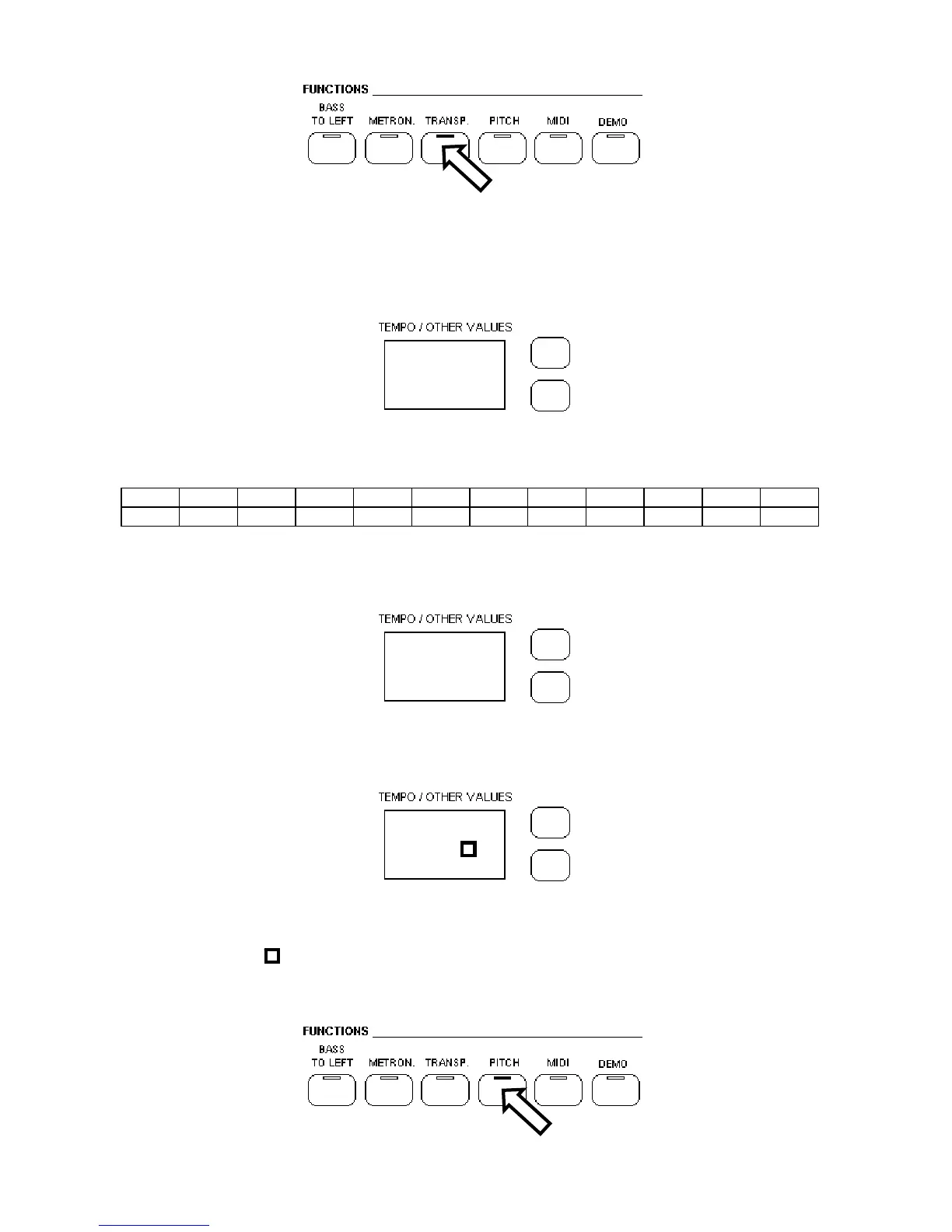 - Sobald der Taster “TRANSPOSE” gedrückt wird, zeigt das Display