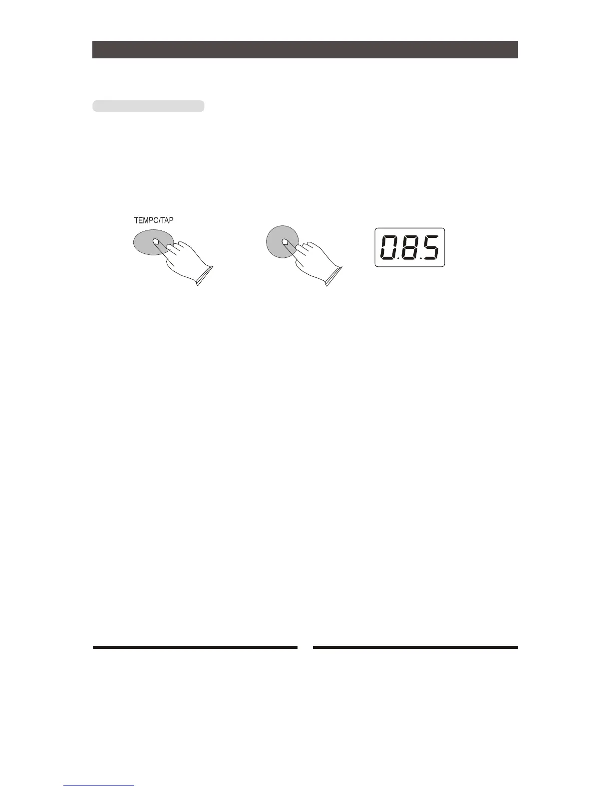Press [TEMPO/TAP] button 2 seconds to enter the TAP mode , LED displays will flash , Tap