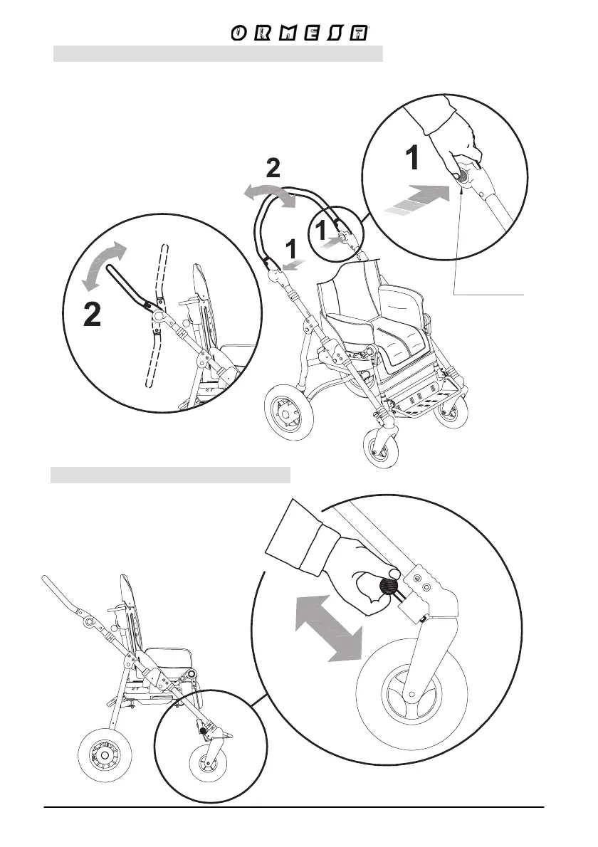 Ormesa BUG - Adjusting the Inclination of the Handle; Front Wheel Direction Locks